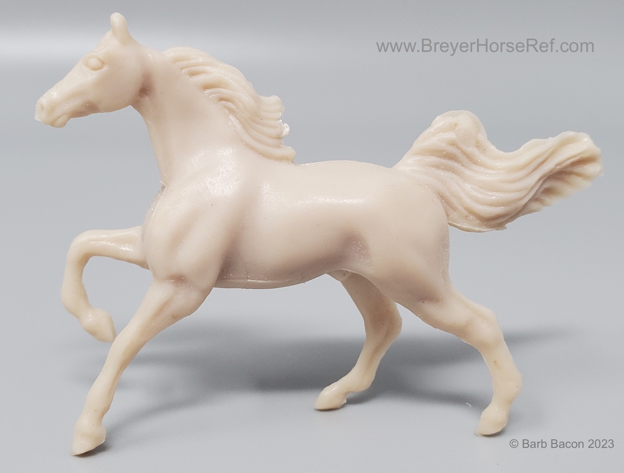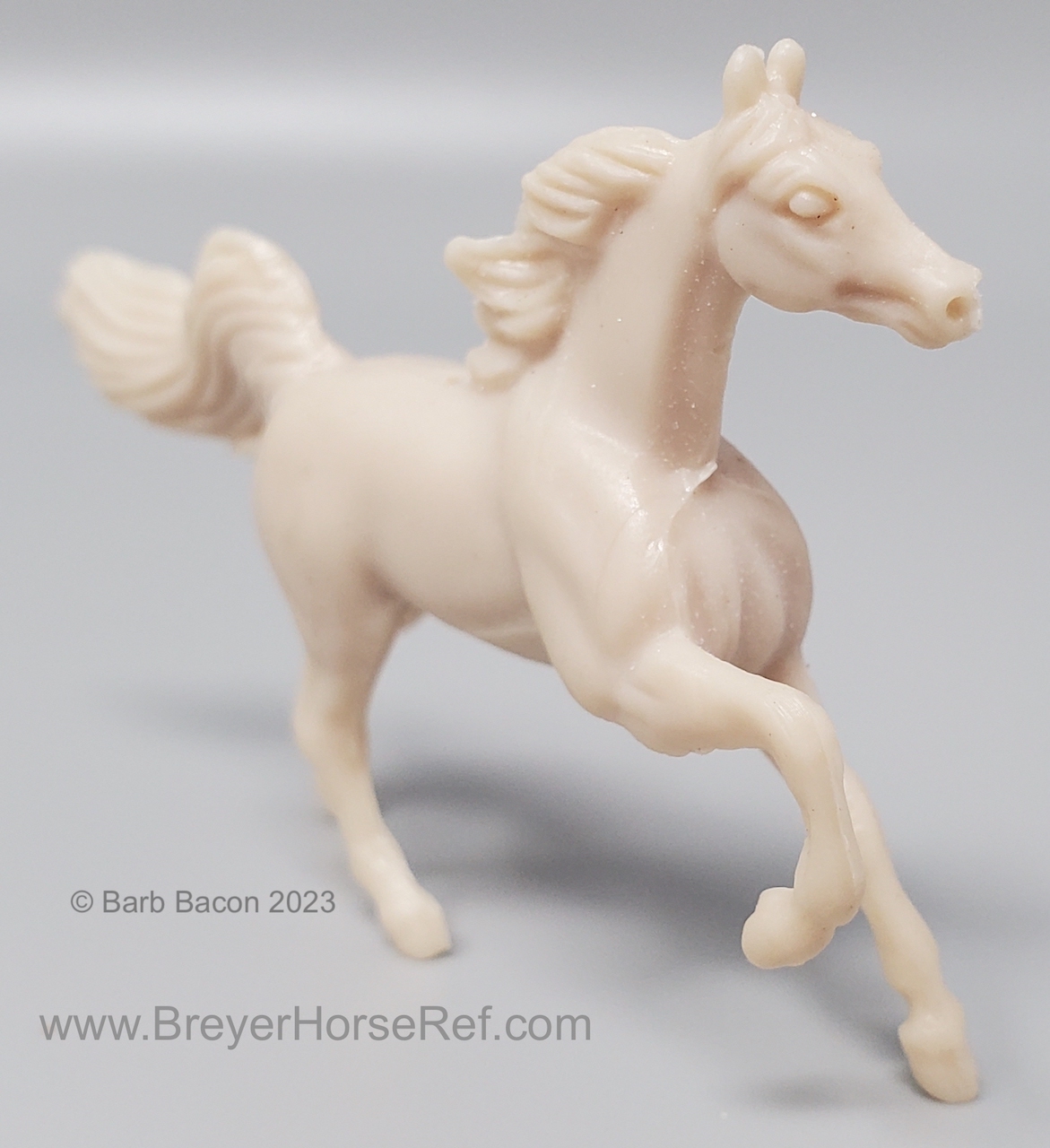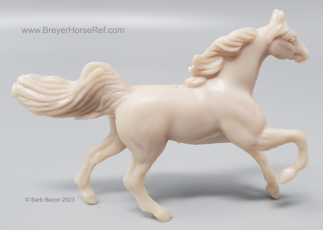 This set came with both a palomino and unpainted Cantering TWH, craft supplies and instruction book. This guy is unpainted and has a tiny little hold drilled through the back for making the ornament.