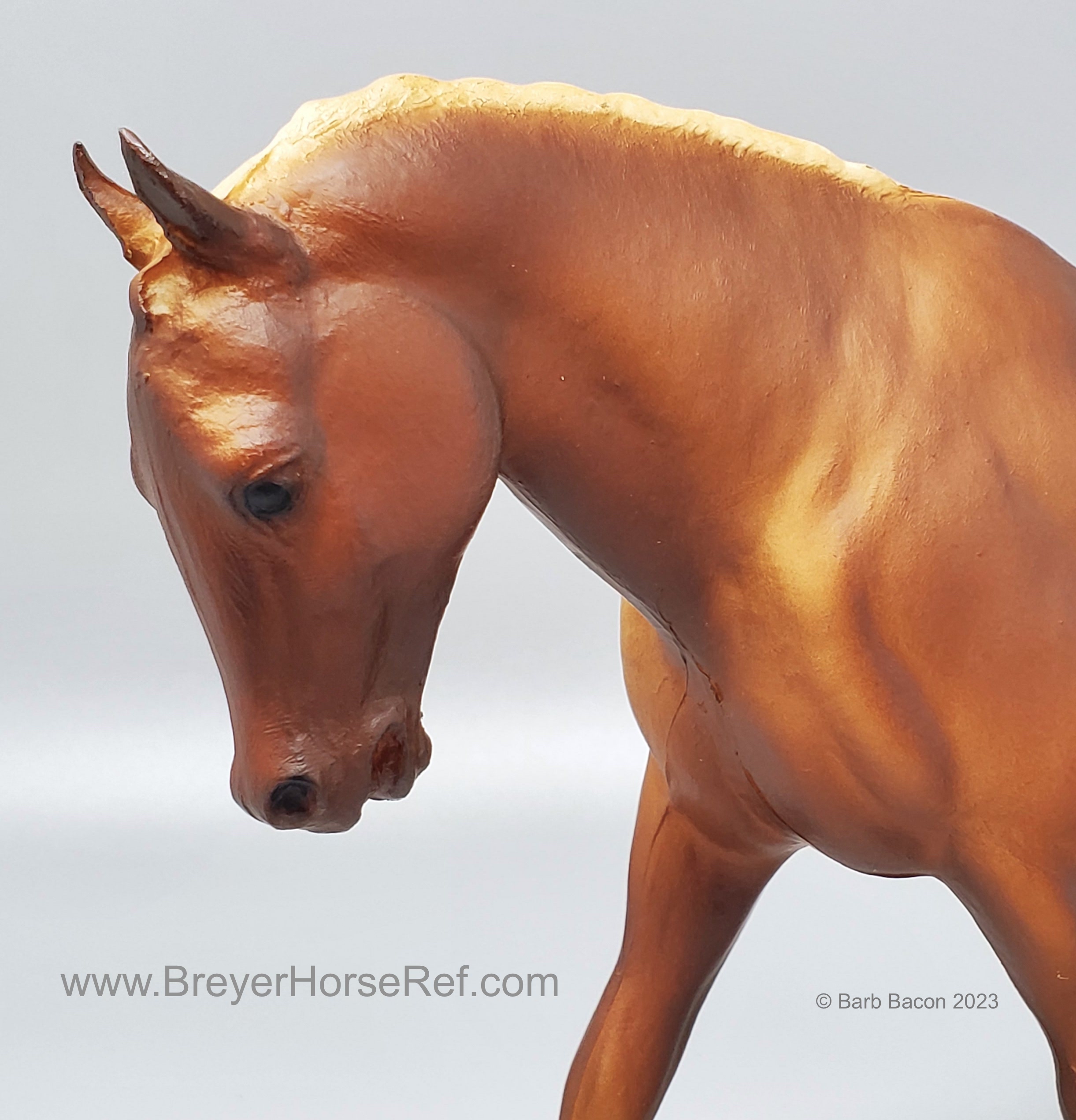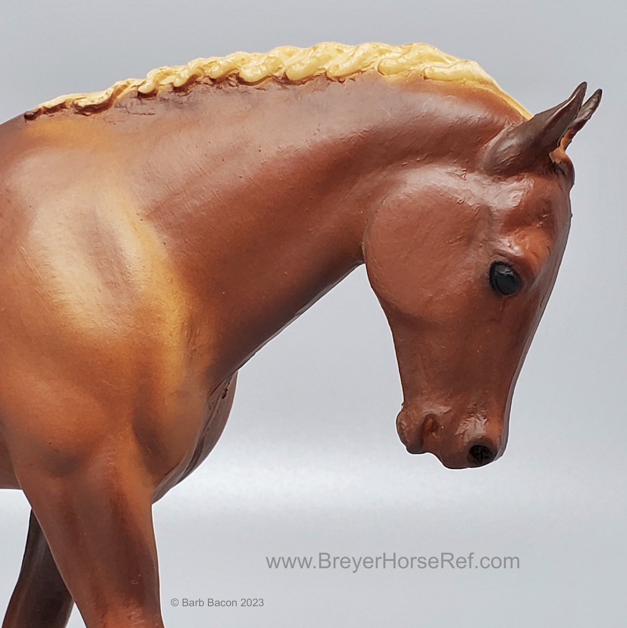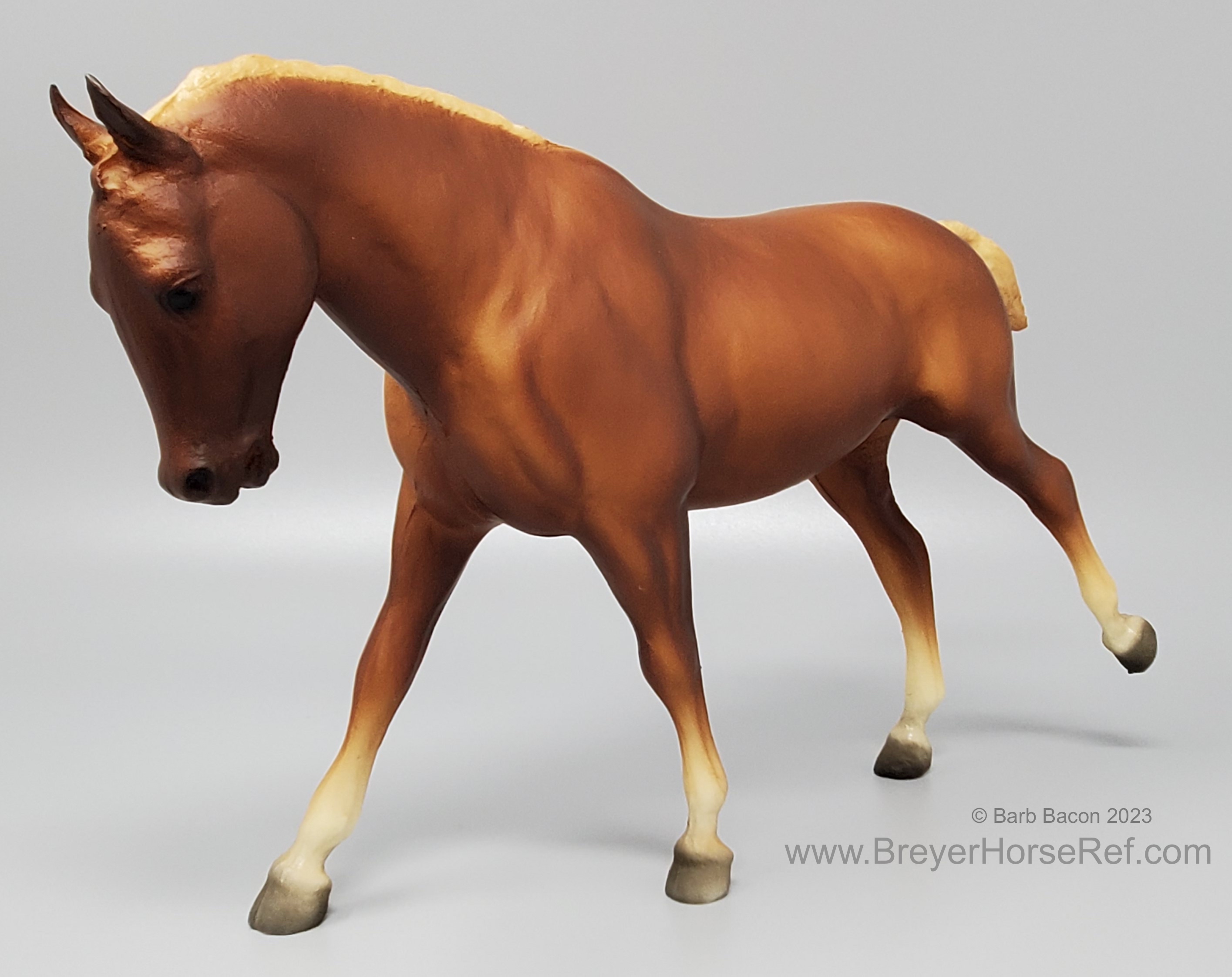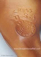 Has the round Breyer Molding Co Copyright Stamp, a USA Stamp, and a CHESS Stamp, and some models have a B Stamp, which signifies a different plastic blend was used for the mold. CHESS stands for Chris Hess.
