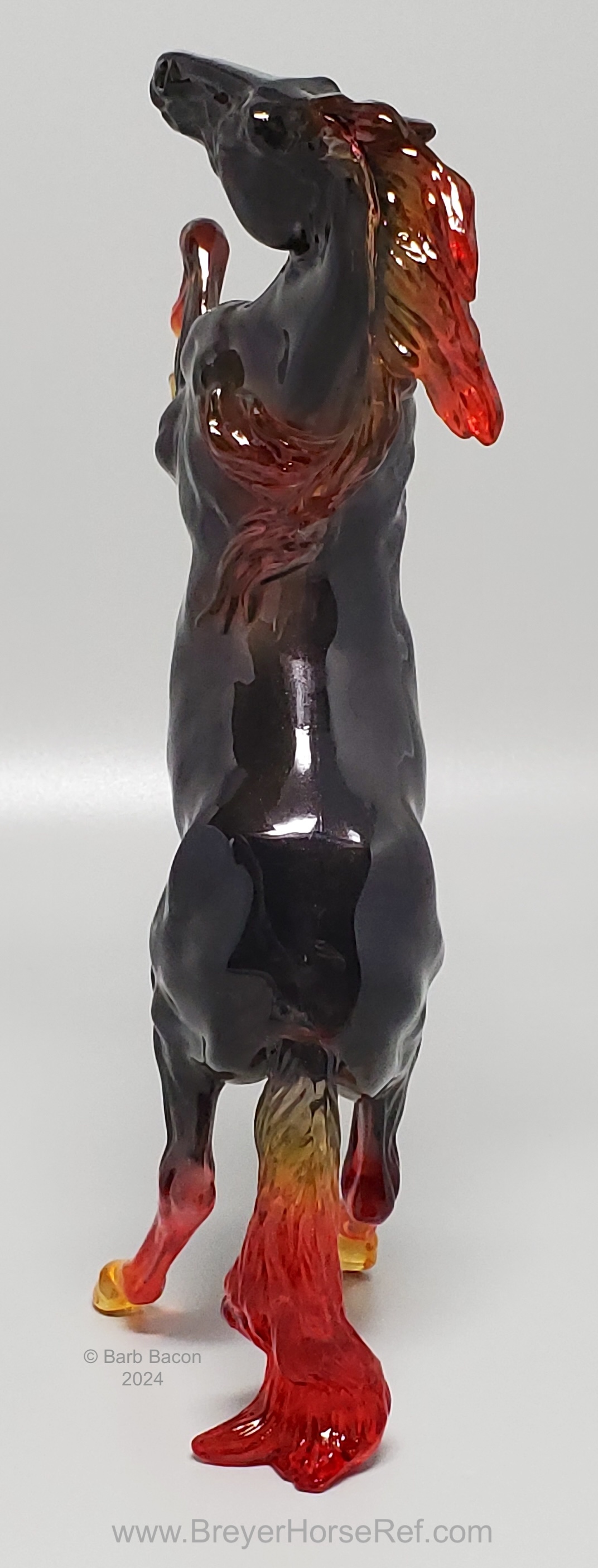 -Brandell is a powerful rearing Mustang who embodies the beautiful and eye-catching properties of a fire and the uniqueness of a fire-type horse. He is reminiscent of burning charcoals with his shimmery smokey black coat and fiery accents.