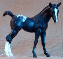 Sold through JCP in 2004 as Stallion, Mare and Foal Set with the Amber, Strapless and Zippo Pine Bar molds as #410154/671-1300. The Zippo and Amber molds were the only models exclusive from JC Penney.