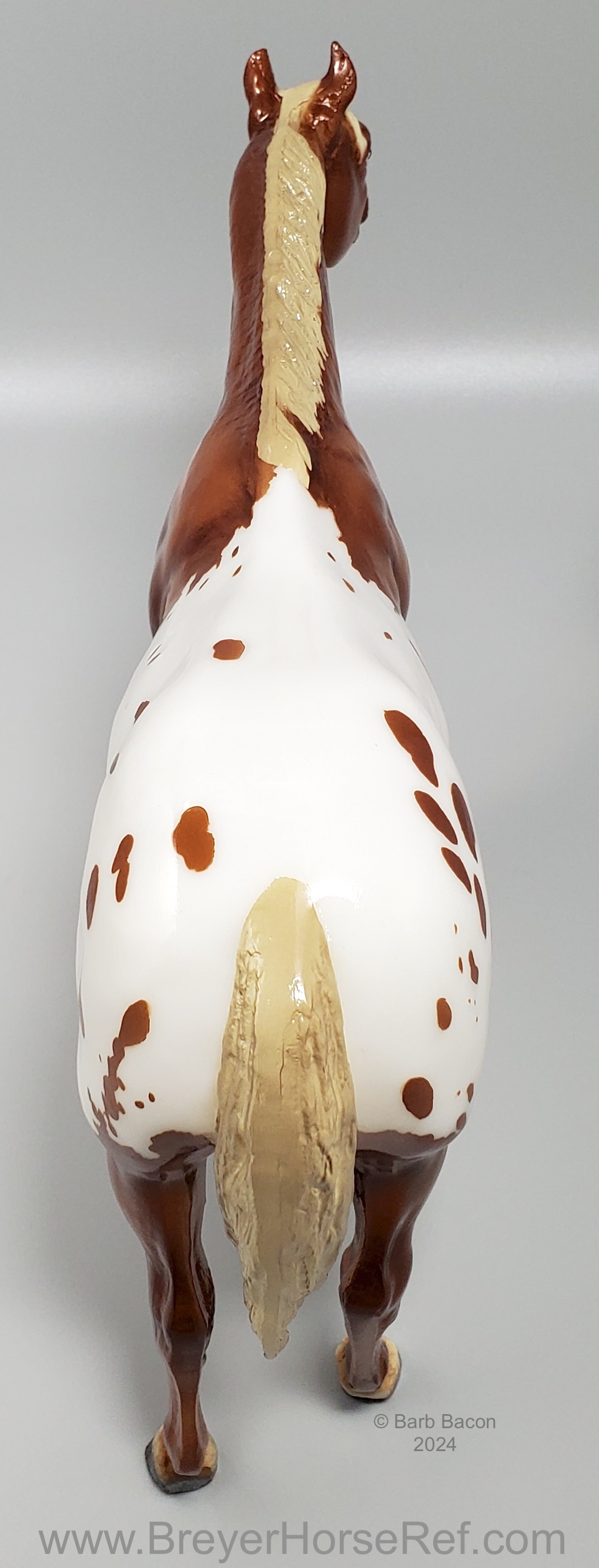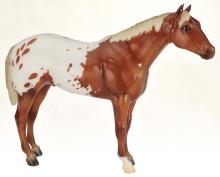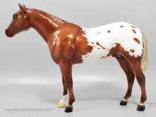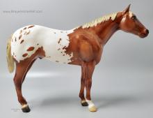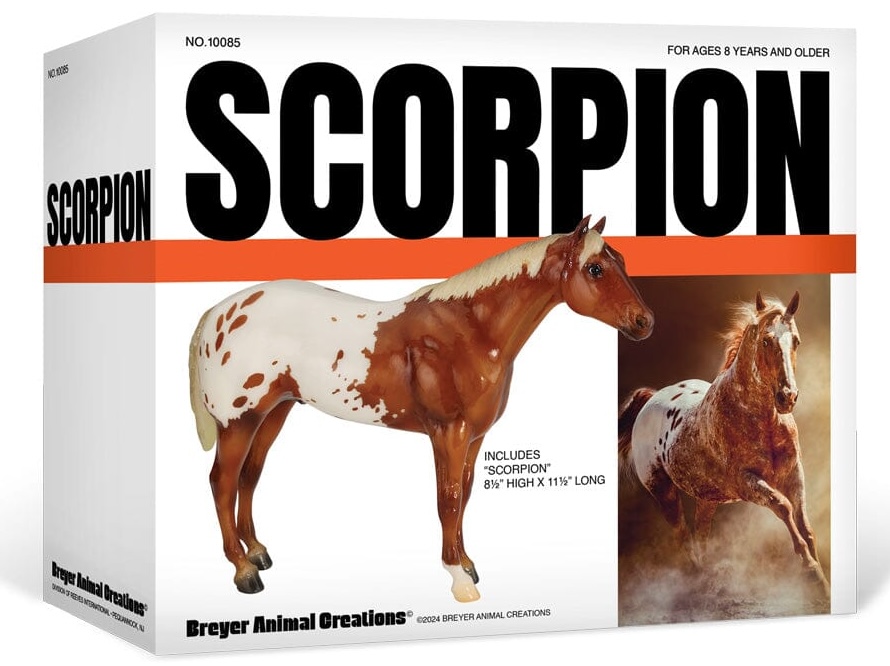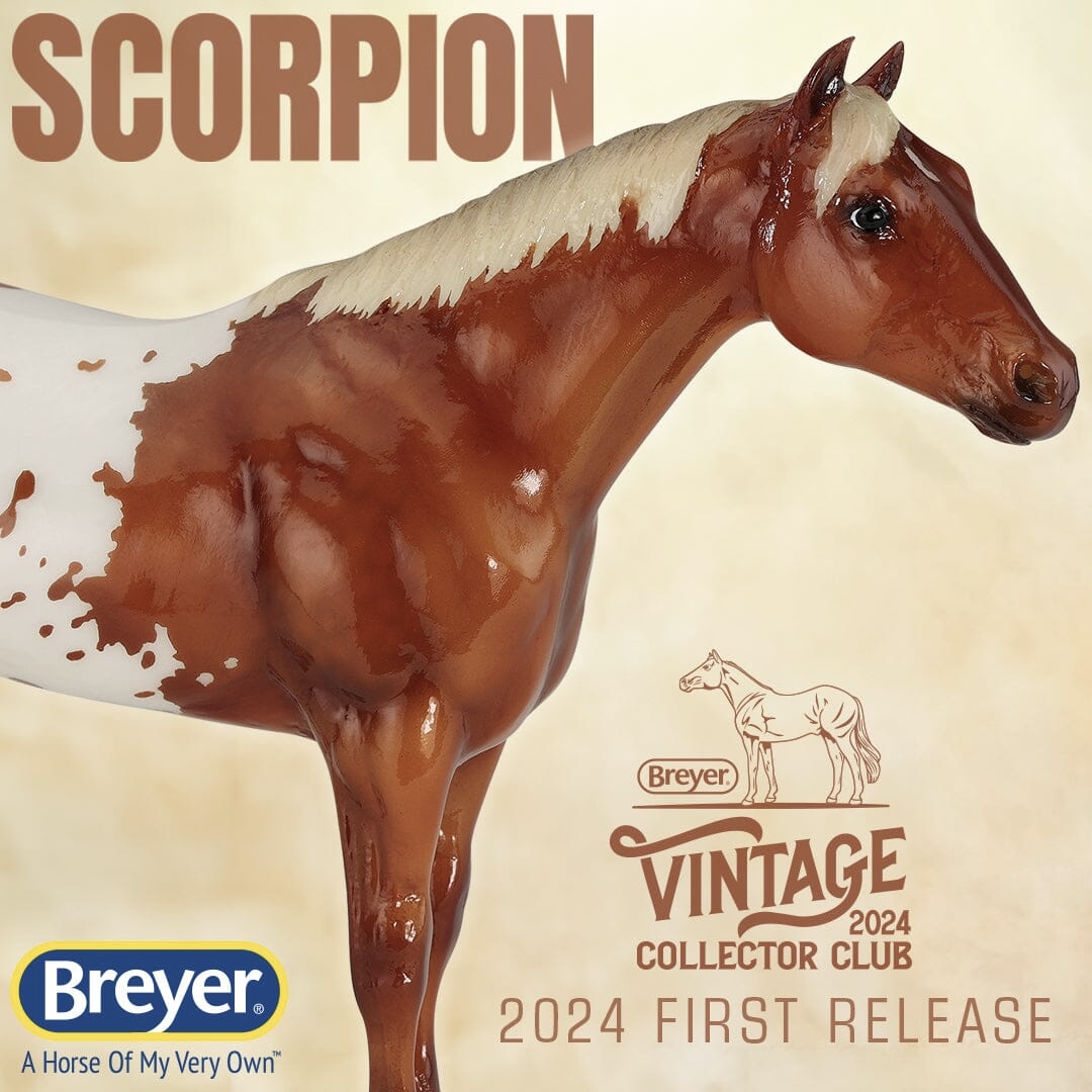 One of the many portrait models that appeared during Breyer’s “Golden Age of Celebrity” in the 1970s, Stud Spider’s now-iconic blanket appaloosa pattern has shown up several times since his retirement in 1989. We thought we’d honor it for his Vintage Club release with a freshly detailed blanket and a sun-kissed flaxen chestnut coat color! Say hello to Scorpion!" www.breyerhorses.com.