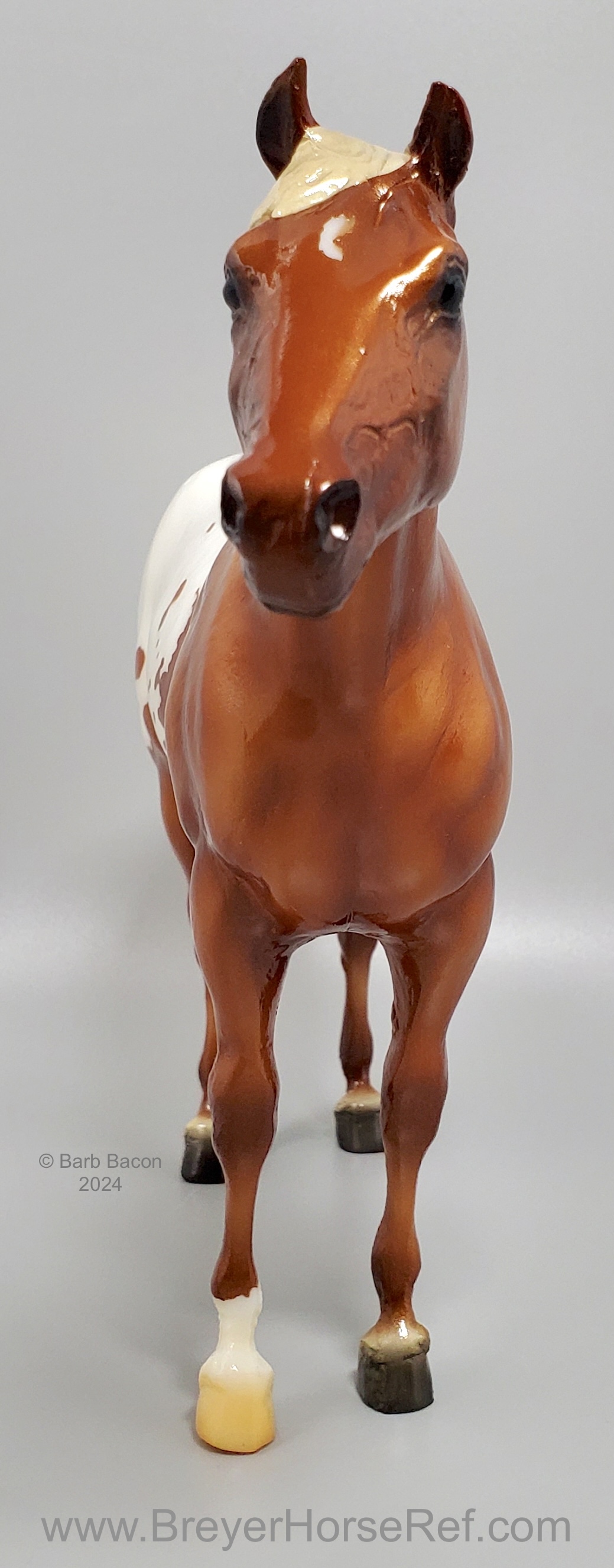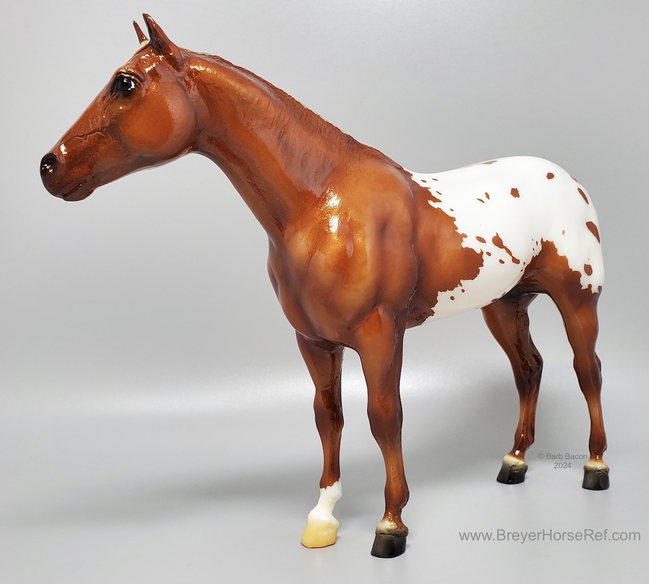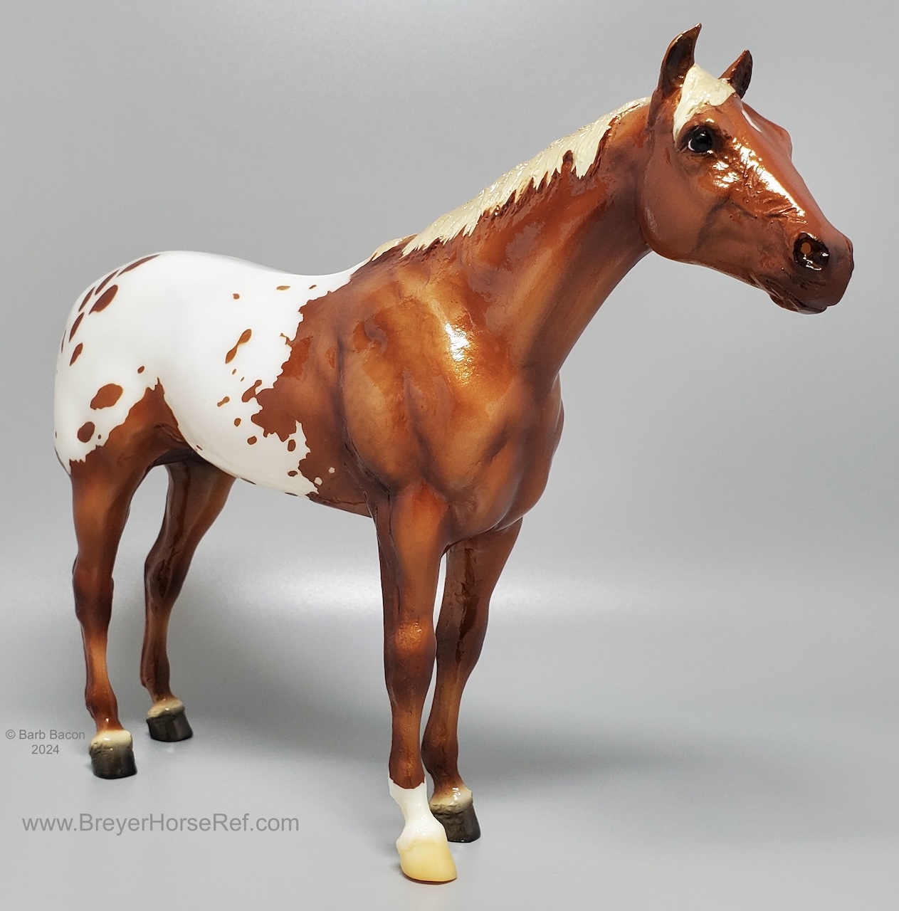 One of the many portrait models that appeared during Breyer’s “Golden Age of Celebrity” in the 1970s, Stud Spider’s now-iconic blanket appaloosa pattern has shown up several times since his retirement in 1989. We thought we’d honor it for his Vintage Club release with a freshly detailed blanket and a sun-kissed flaxen chestnut coat color! Say hello to Scorpion!" www.breyerhorses.com.
