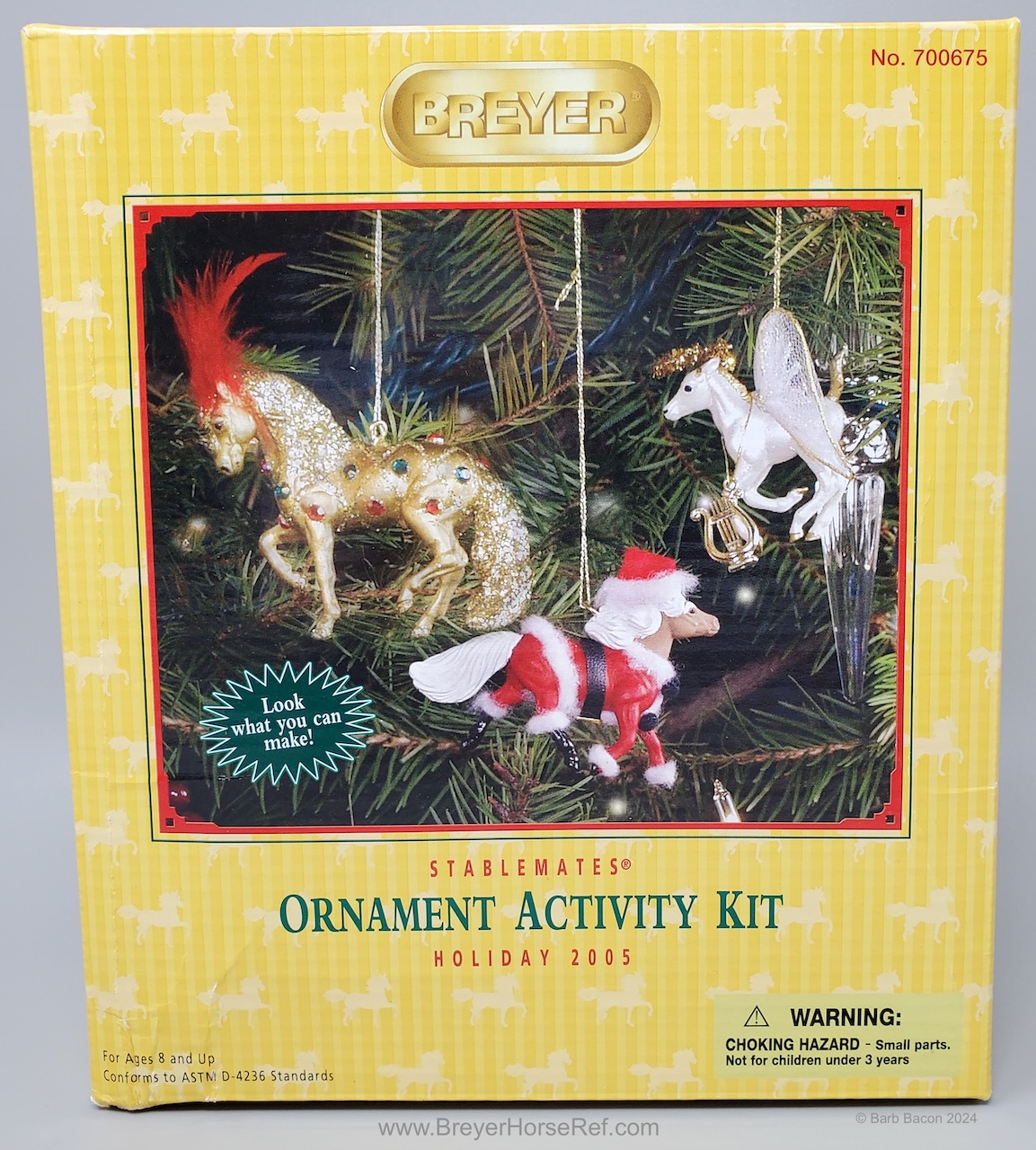 Holiday Ornament Craft Kit Set #700675, released in 2005. Included the Cantering Foal, Andalusian and Shetland Pony with craft supplies. Each model has a little eye hook attached to the back. On the 2005 Retired List.