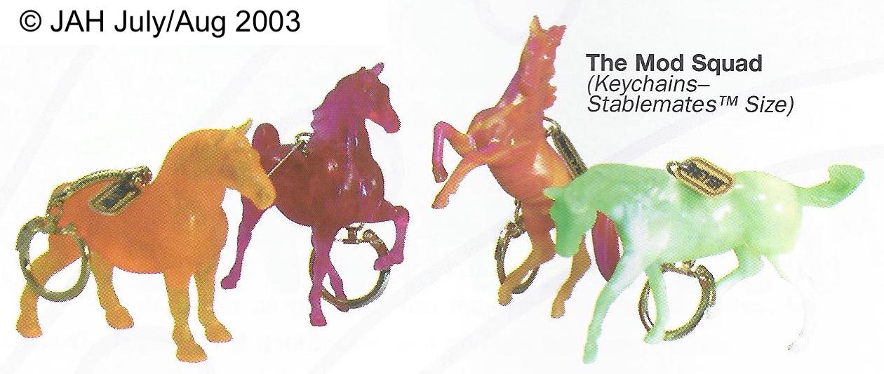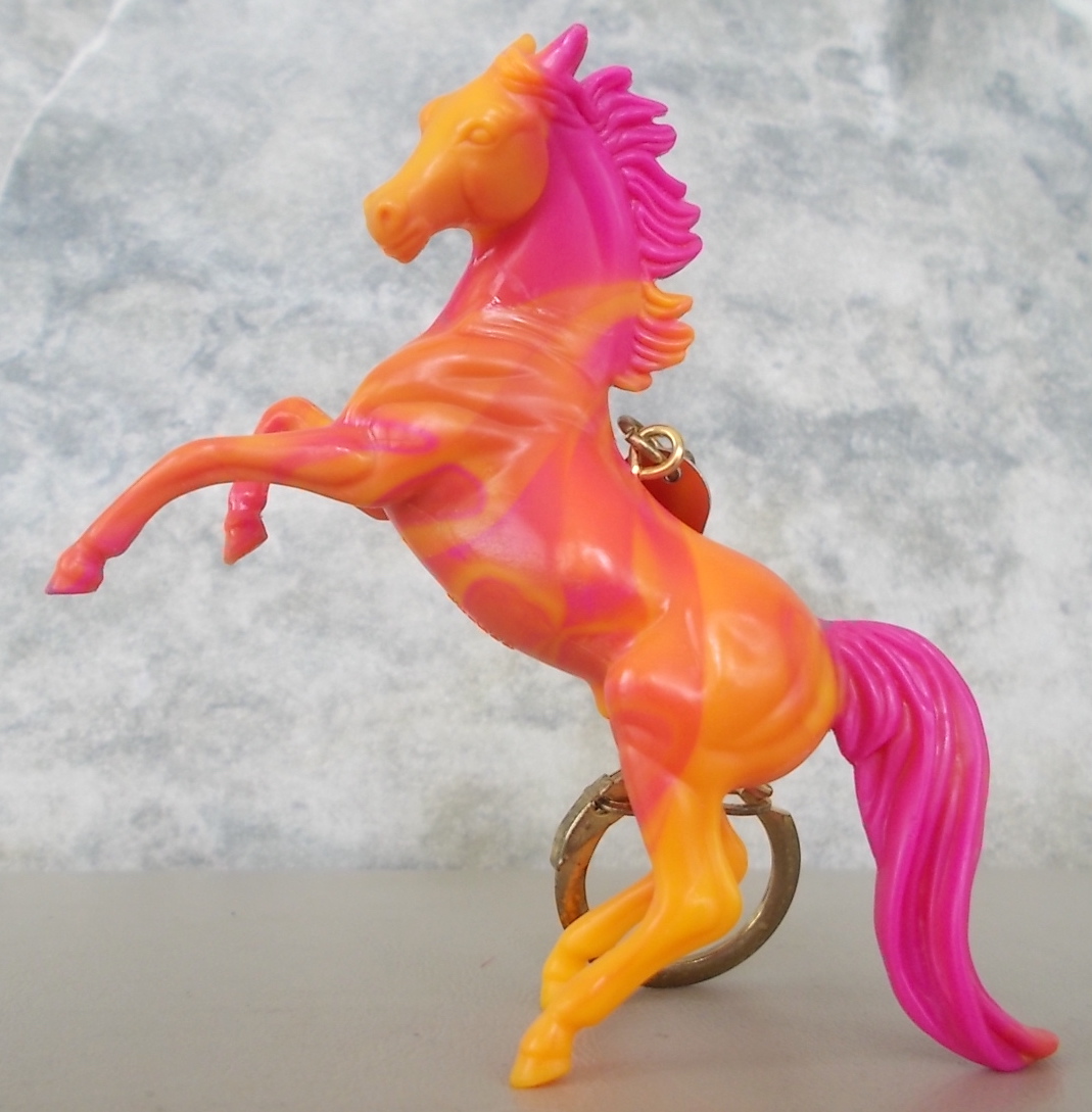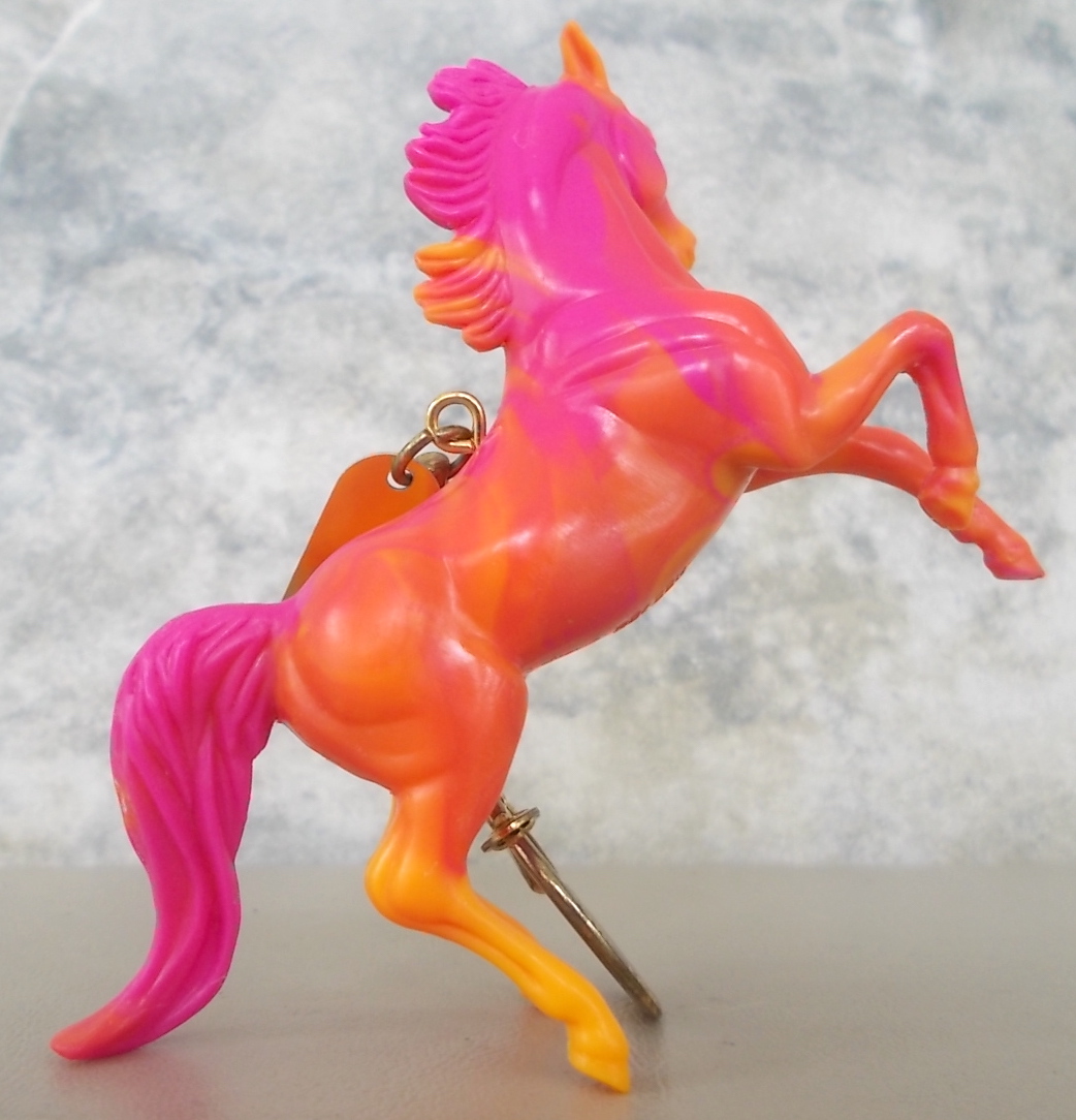 Included the Appaloosa, Rearing Arabian, Draft Horse, and Saddlebred. Unpainted orange-swirl plastic.