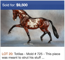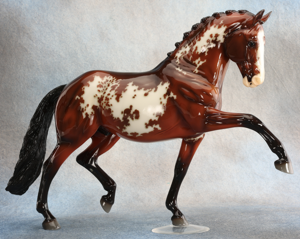 Glossy Blood Bay Overo Totilas designed by Lesli Kathman at the Breyer factory in New Jersey. BreyerFest 2024 Auction.