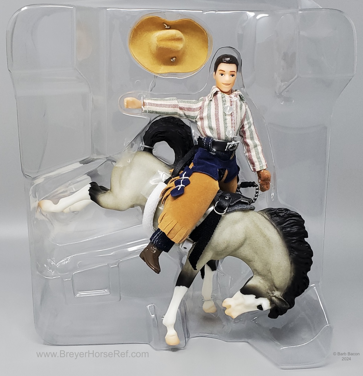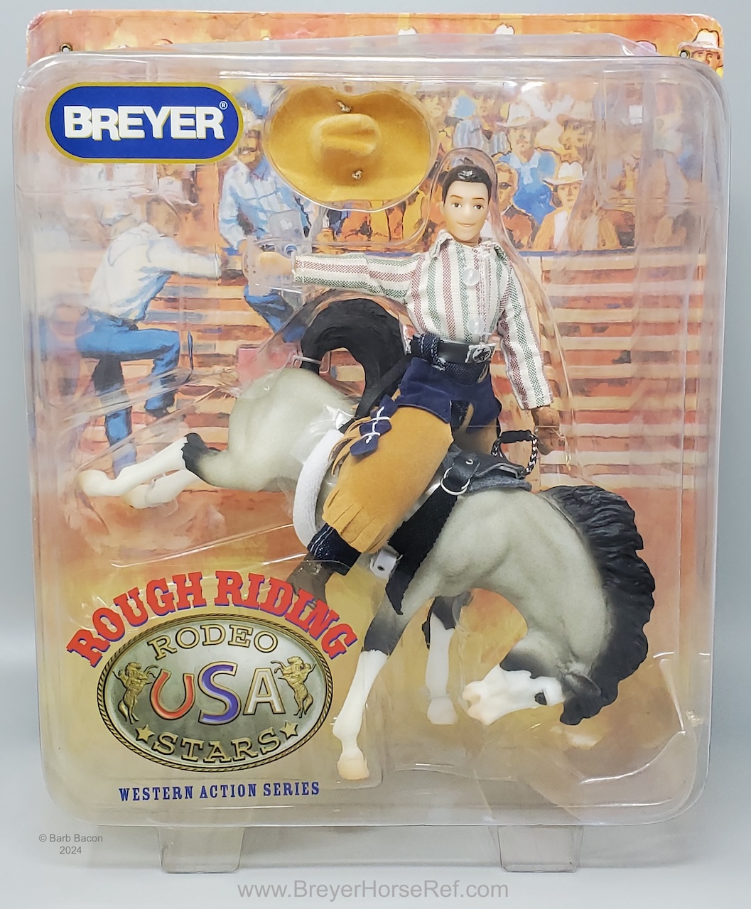 Released as Bucking Bronco Set #6012 from 2001-2005, which included Cody, the cowboy, and Volcano, the bucking horse along with bareback rigging tack. On the 2005 Retired List.