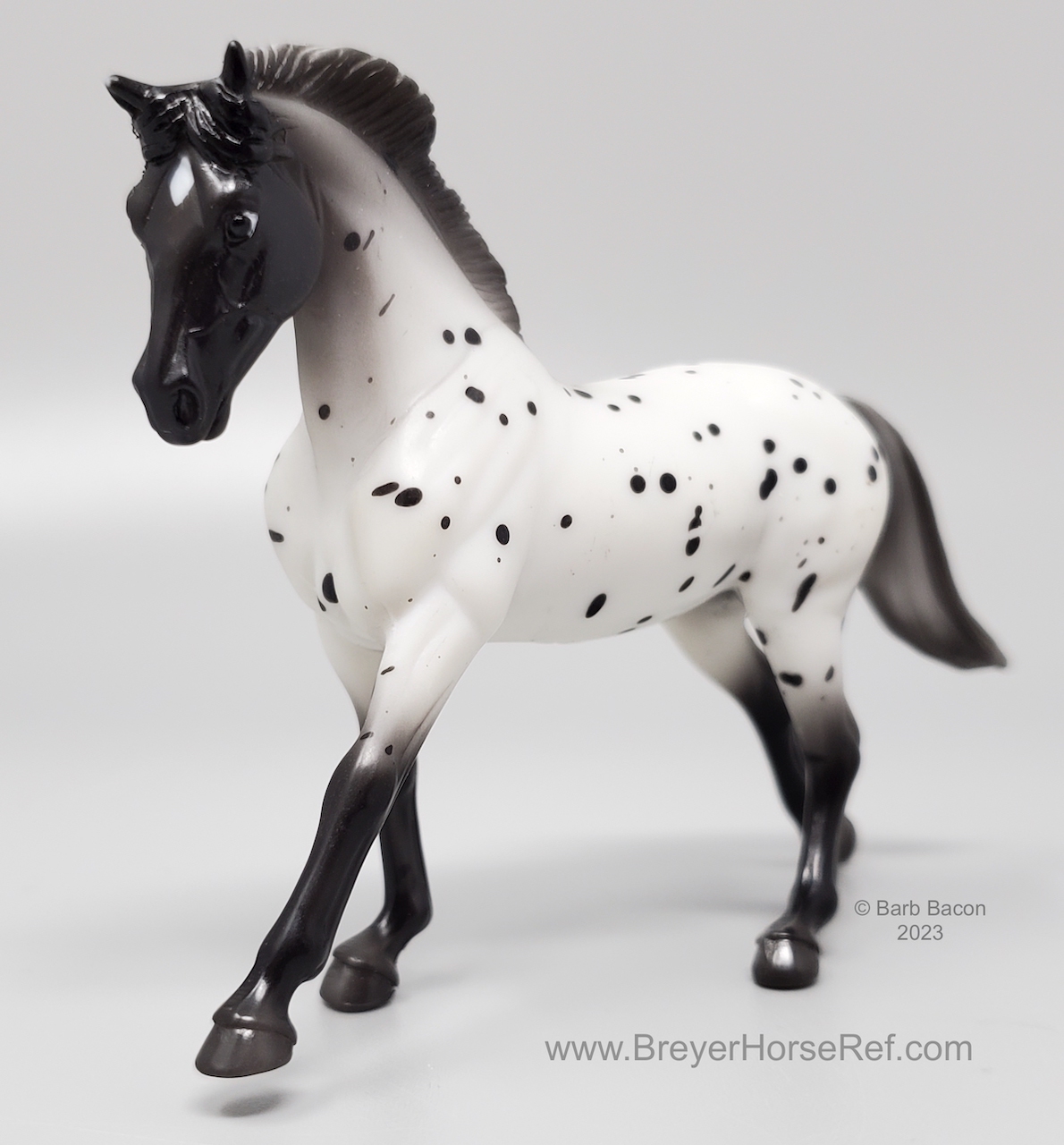 This set, with poster, was released by JC Penney in 2010 as the 10 piece Parade of Breeds VII Set #410443. The set included a light grey Arabian, a black leopard appaloosa Cantering Warmblood, American Cream Clydesdale, chestnut Hanoverian, grulla Quarter Horse, dark grey Rearing Andalusian, palomino appaloosa Scratching Foal, bay Shetland Pony, chestnut Standing Foal and a chestnut pinto Tennessee Walking Horse. On the 2010 Retired List.