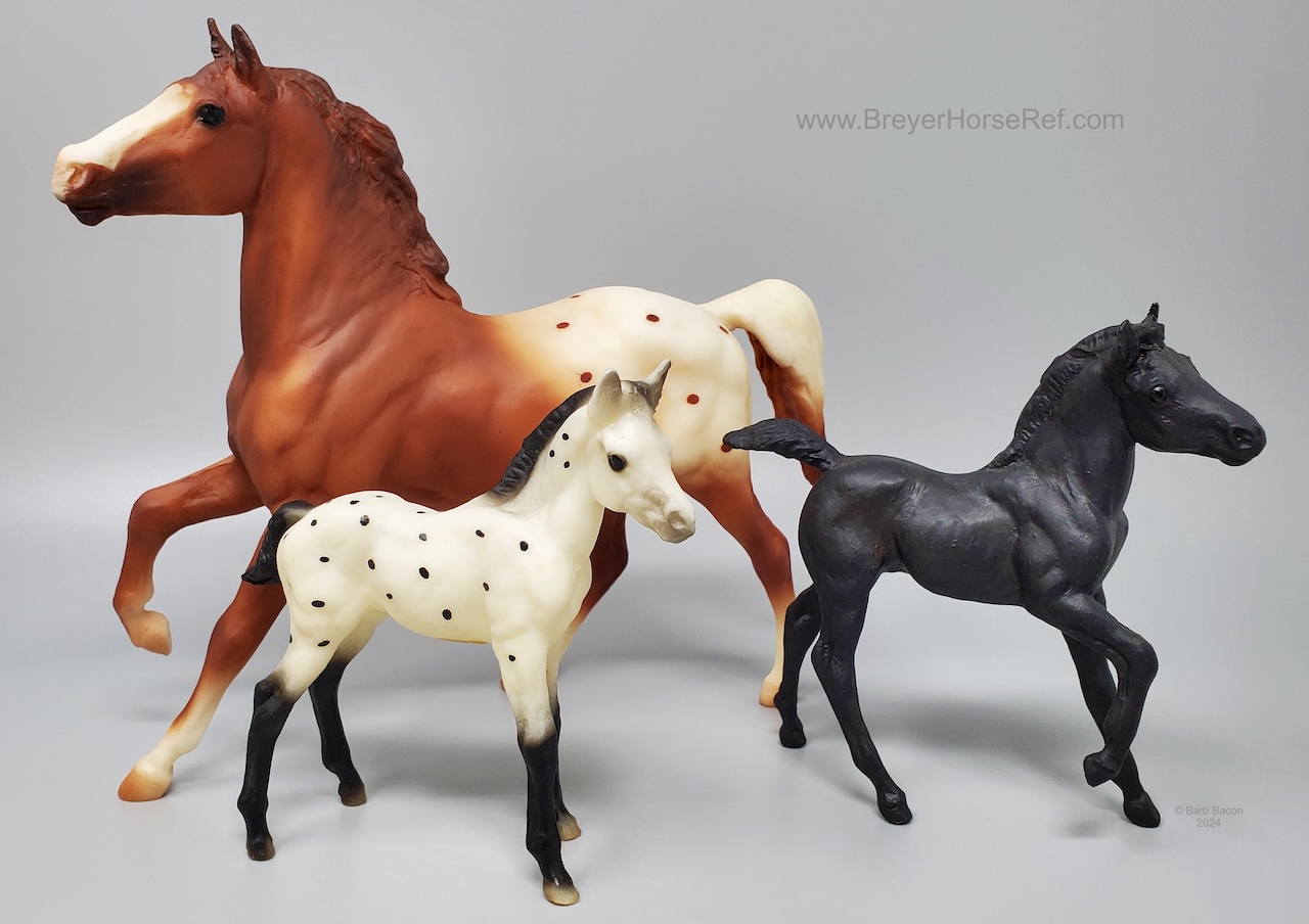 This set included a Chestnut Appaloosa Black Beauty, Leopard Appaloosa Mustang Foal, and a Black Andalusian Foal. Both bay and black leopard appaloosa colors were available. JC Penney Exclusive with COA.