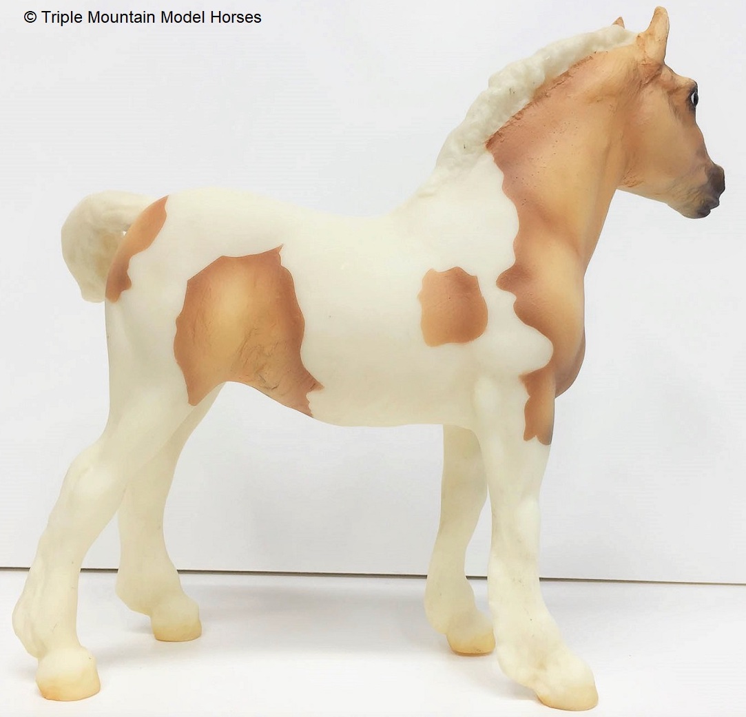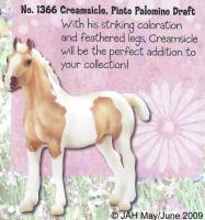 Model was released as both Creamsicle and Cream Soda, and referred to just 'Draft Foal - Palomino Spotted'. On the 2010 Retired List.