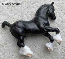 British Breed 4 Piece Set #1402, released for 2006. Included a dark bay pinto Standing Thoroughbred, light grey Warmblood Jumper, dun Highland Pony, and dark dapple grey/black Clydesdale.