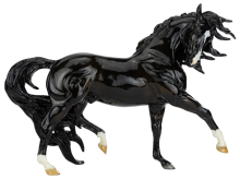 "One of the perks of ordering your BreyerFest tickets during the Early Bird period is being automatically entered into our Early Bird Ticket model raffle. Meet this year’s stunning prize, Dyflin. Done on the Esprit mold, mold #717 sculpted by Kathleen Moody, this stunning model has been done in a beautiful, rich black with a soft gold interference shimmer to his coat, and topped with a high-gloss finish. Named after the 10th century Viking settlement in Ireland, Dyflin is the Old Norse derivative of the Irish “Dubh Linn” which means black pool. The settlement was named after the junction of the River Liffey and the River Poddle that created a naturally deep pool used to moor boats in the middle ages." www.breyerhorses.com.
