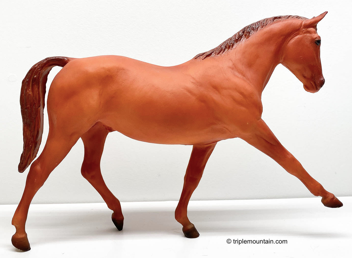 Bright chestnut with no white markings. Sold separately or in a set with the Alabaster, Chestnut, Red Bay and Black Hanoverians.