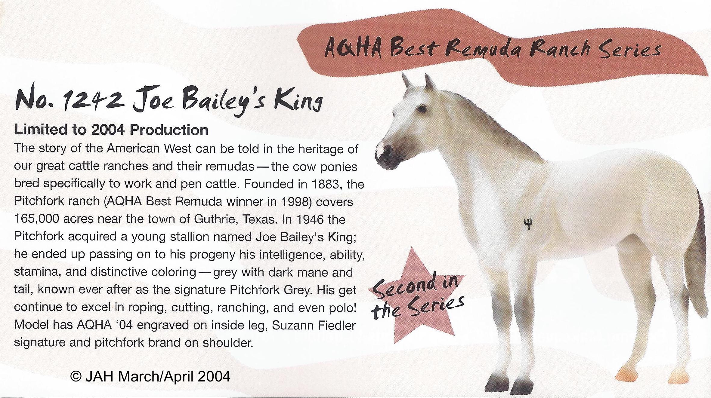 Best Remuda Ranch Series. Came with Registration application. Some models did not have the brand on the left shoulder. On the 2004 Retired List.