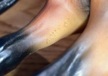 '2002' stamped in gold on belly and 'AQHA 02' mold mark on back left leg. Released through QVC - unknown model number and quantity. This may be a reissue of #499 but with no sock.