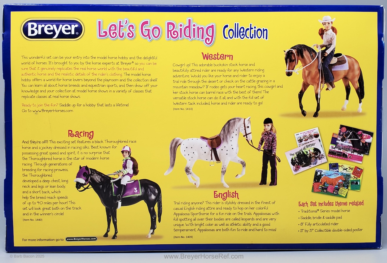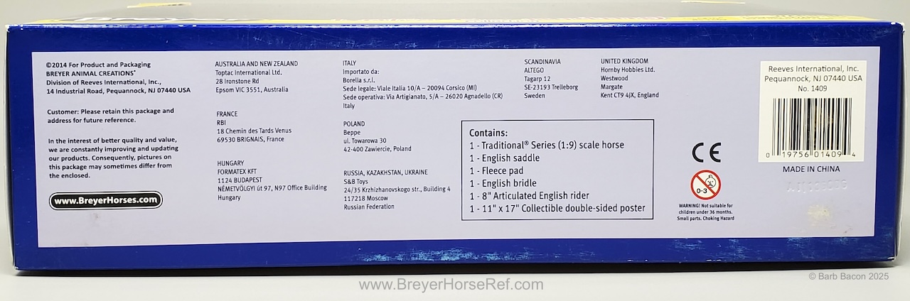 Included English tack, doll and poster. On the 2017 Retired List, but still shown in the 2017/2018 catalog. Not sure about other models, but my model does not have a copyright stamp.