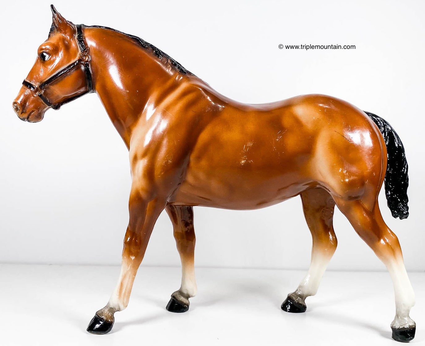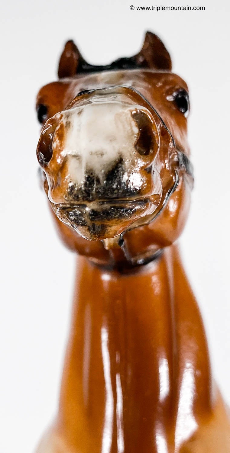 Has been referred to as both bay and sorrel. Most models had eye whites. Has the round Breyer Molding Co Copyright Stamp. This mold was originally called 'Quarter Horse' and from around 1963-1968 this mold was called 'Two Bits'.