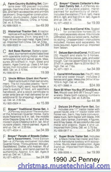 In 1990, the Parade of Breeds Collector's Assortment III Set #711090 was sold through JC Penney. The set included the American Saddlebred, Quarter Horse Stallion, Thoroughbred Stallion, Morgan Stallion, Clydesdale, and Arabian Stallion.
