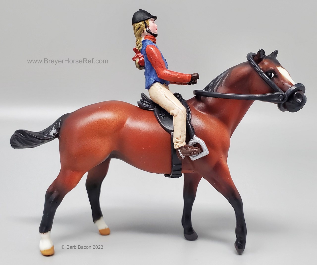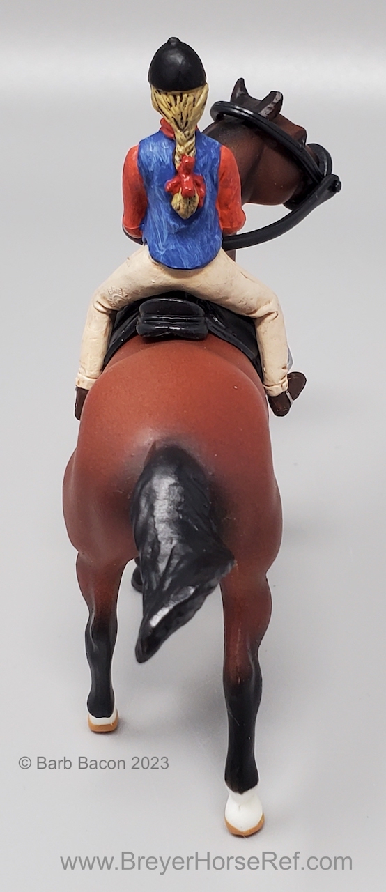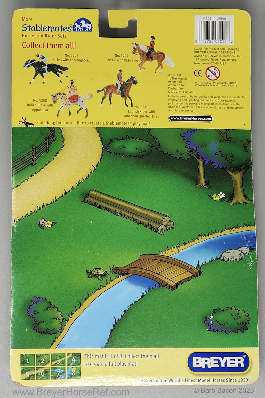 Included rider, saddle, bridle, plastic trophy and ribbon, and a paper fence. For 2006, the model in this set was the Warmblood.