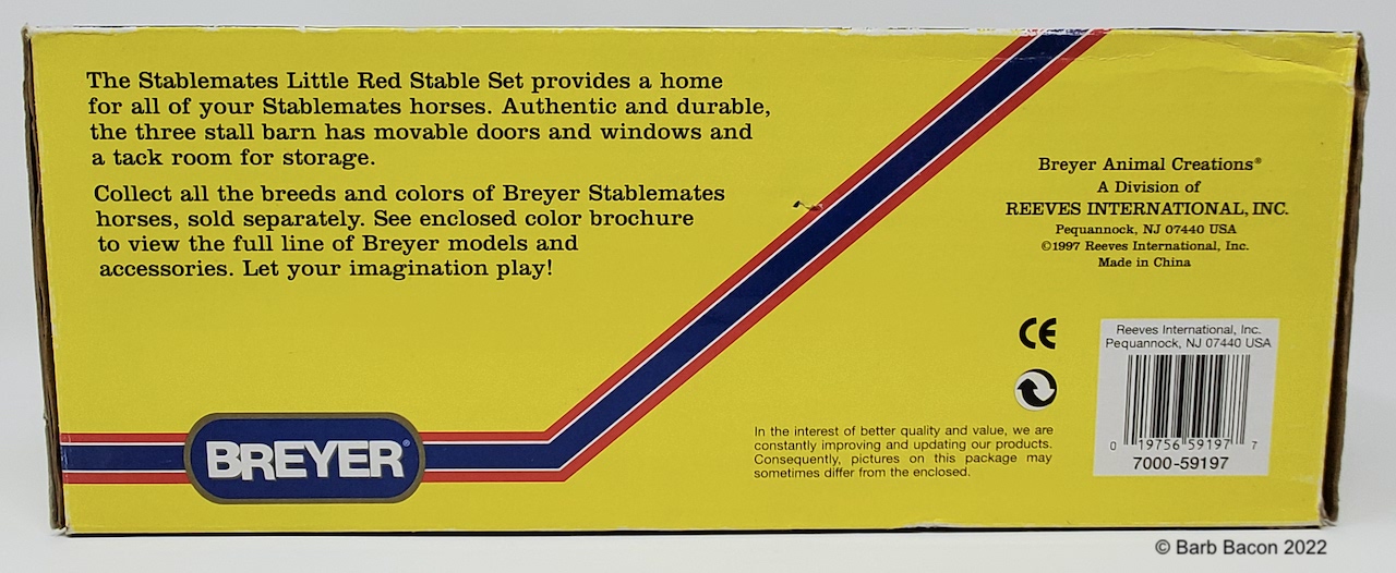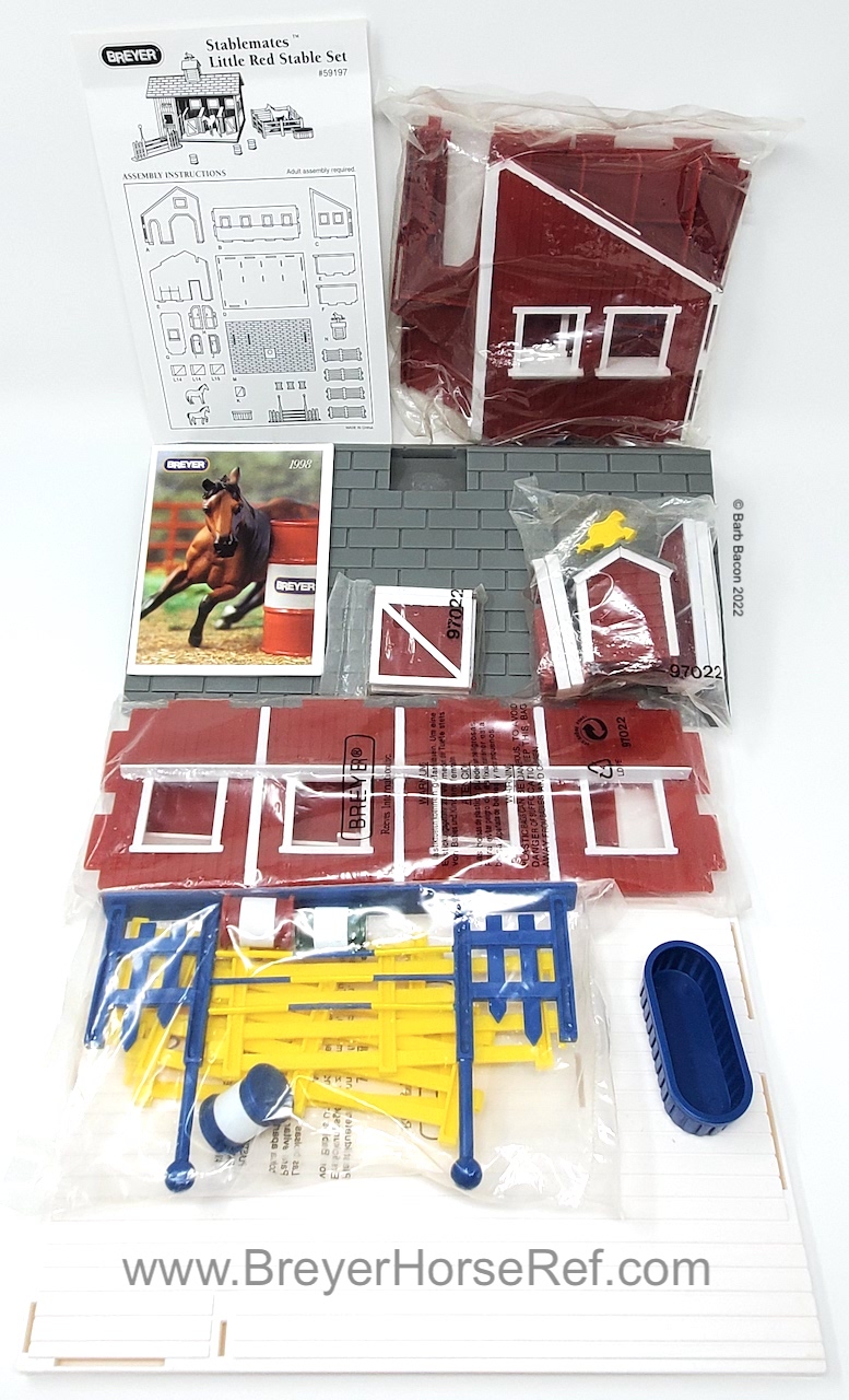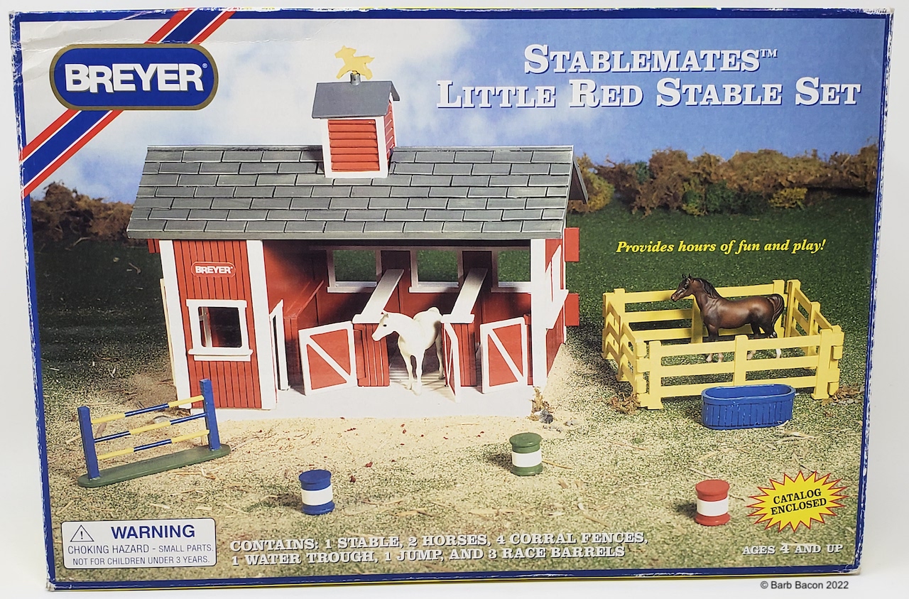 Included the Quarter Horse Stallion, Arabian Stallion, stable with tack area, fencing, jump, water trough, and three racing barrels. This model replaced the Citation model sometime in 1998-1999 (even though the box was pictured in the 2000 catalog).