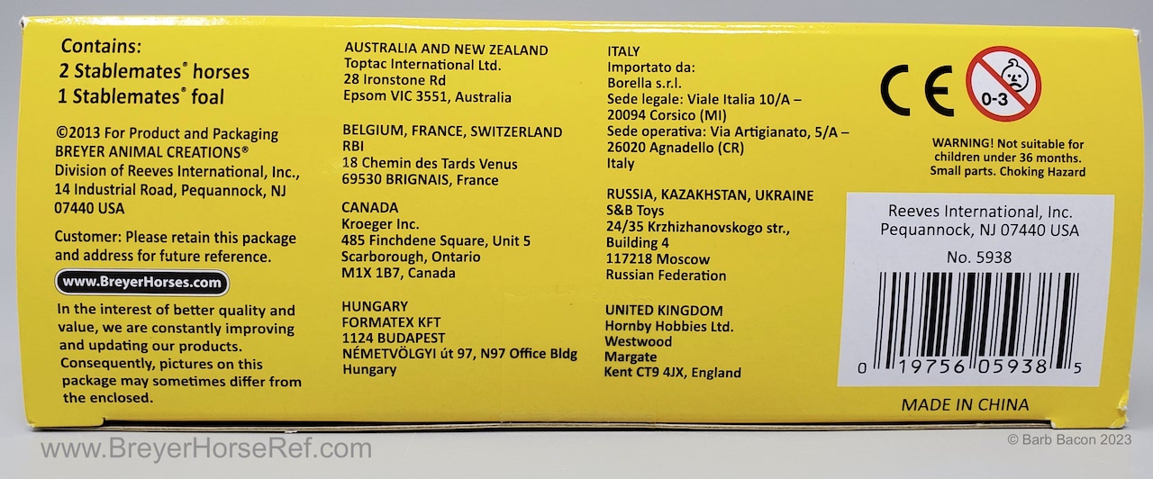 Included the Walking Arabian, Scrambling Foal, and TWH. #5938 refers to these Mystery Foal Surprise Family Assortment Sets. Released later in 2013, so not pictured in the 2013 catalog.