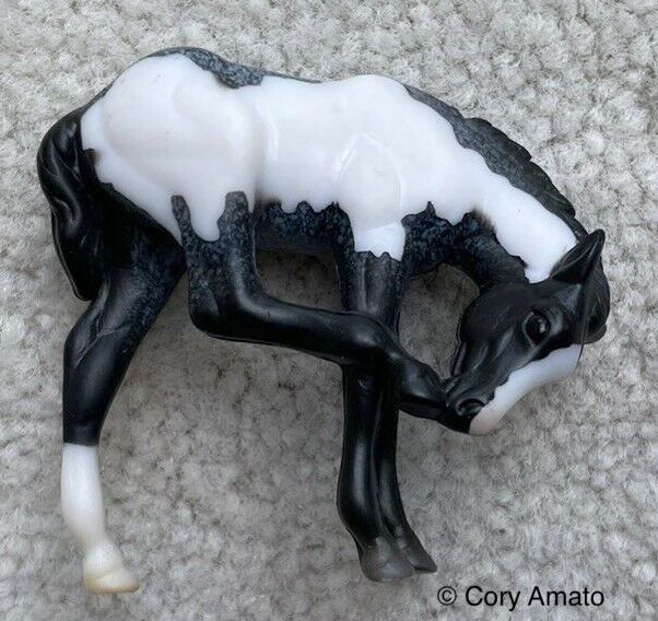 This model was available 2013-2015 in the Mystery Foal Surprise Family #6 set #5883. The set included the Rearing Andalusian, Scratching Foal, and Cantering Warmblood. #5938 refers to these Mystery Foal Surprise Family Assortment Sets. Released later in 2013, so not pictured in the 2013 catalog.