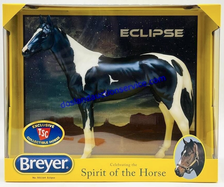 A pinto horse of Thoroughbred type. Eclipse's black coat color is finished with a layer of interference blue. Tractor Supply Co. Exclusive.