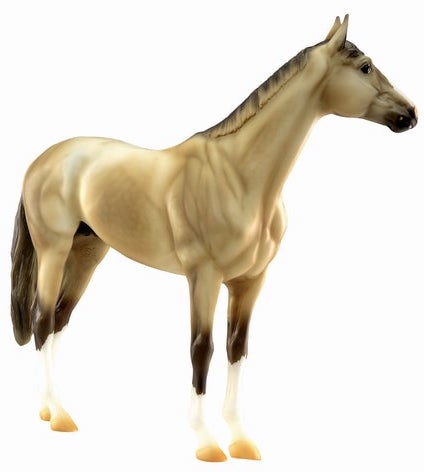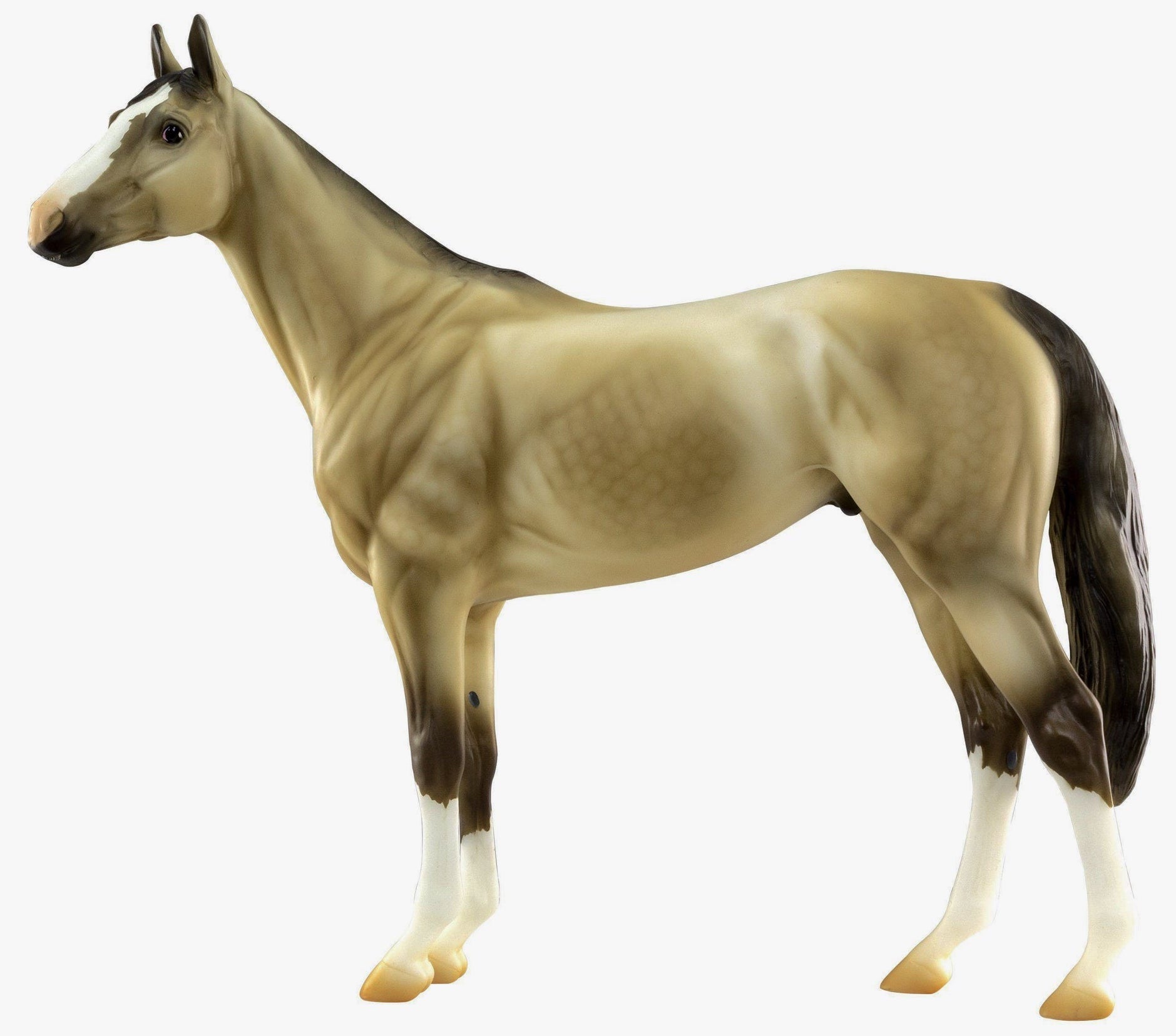 "Rocket was painted as a Light Dapple Buckskin, but 30 lucky shoppers walked away with a slight twist on his original color – a Light Dapple Buckskin Pinto." www.breyerhorses.com. BreyerFest 2019 30th Anniversary Stamp on belly. Some models had a chalky appearance.