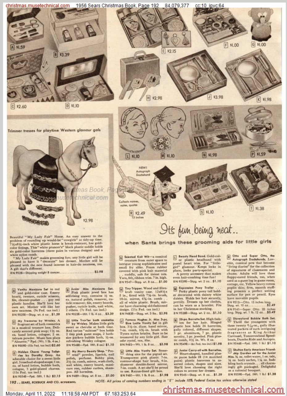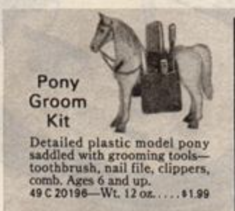 Sears: 1960 as Girls Grooming Horse. Included a Hand Mirror, Comb, Nail File and Toothbrush. Original price was $2.29.