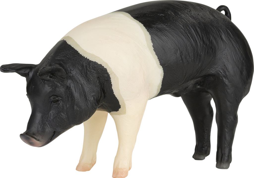 In addition to all of this fun swag, the "Basket of Hope" also contains two extra-special Breyer test run models: a red spotted Ayrshire Cow and a black belted Hampshire Pig. Both of these test run models were hand painted at Breyer's New Jersey facility. It's not too often that test run Breyer animals are offered for purchase, which makes this auction lot even more unique." www.breyerhorses.com.