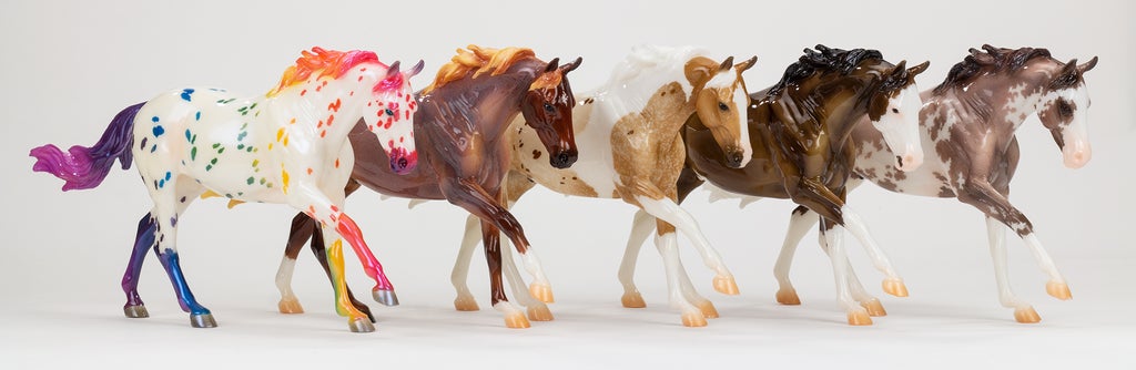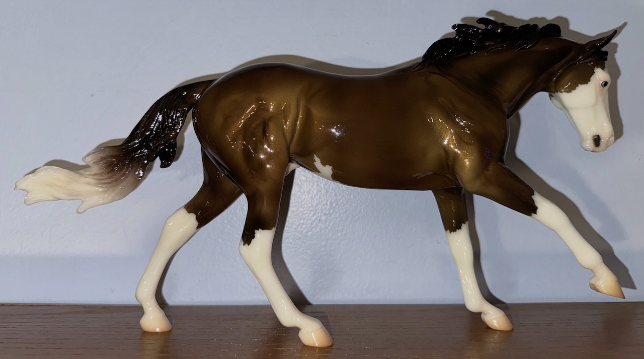 "The Seven Arts refers to the traditional subdivision of the Arts – Architecture, Sculpture, Painting, Literature, Music, Performing Arts, and Film. This year’s BreyerFest was all about coming together as a community and being inspired, whether that be by the natural world, works of art, or each other, and bringing that inspiration to life. This year’s Surprise Model was done on the Australian Stock Horse, mold #746, in a stunning array of five (yes, really, just five) colors, with both matte and glossy finishes. And, since we like to keep fans on their toes, this run of 6,000 pieces was broken down a little differently this year – each variation has 1,000 or fewer pieces: