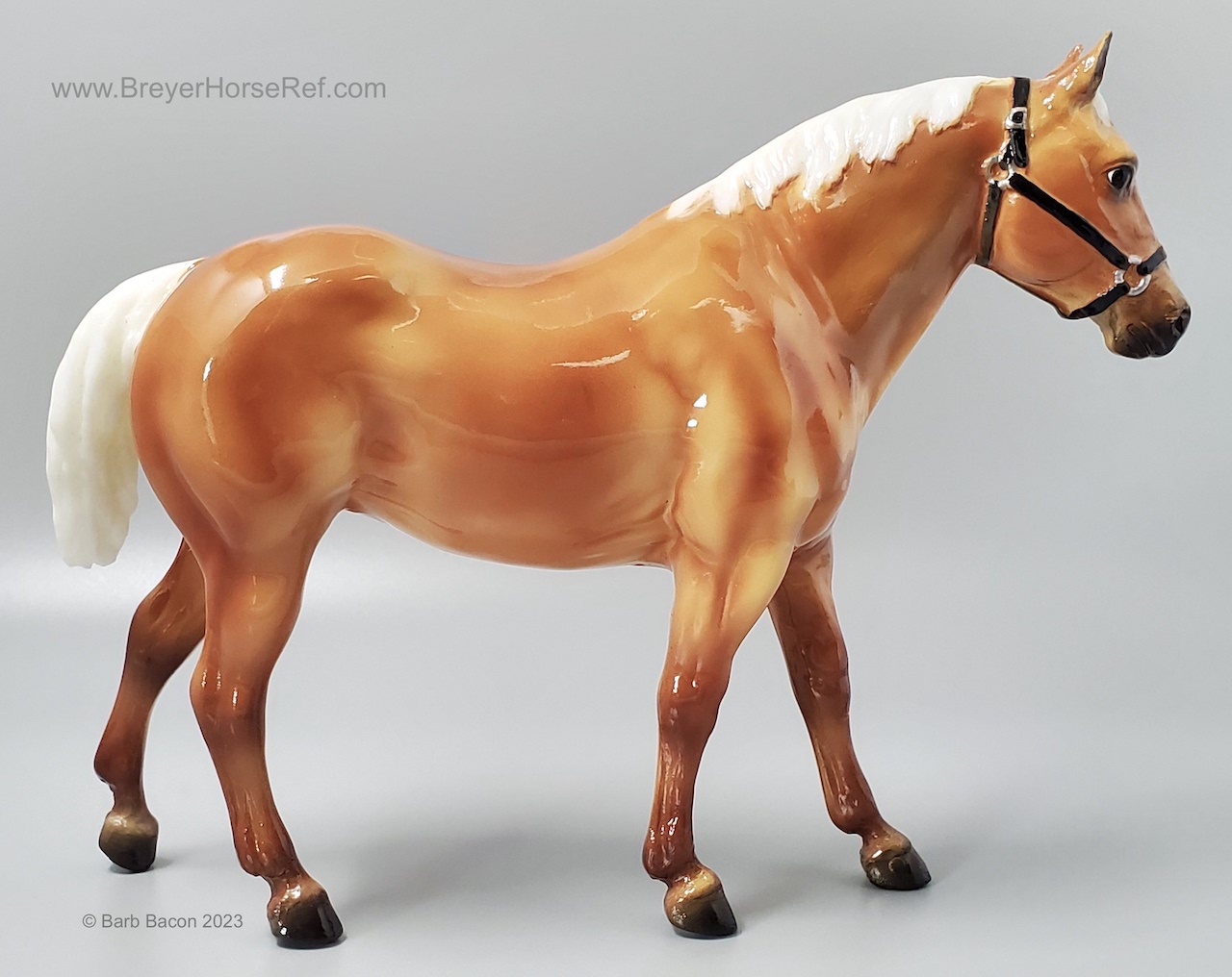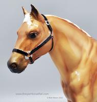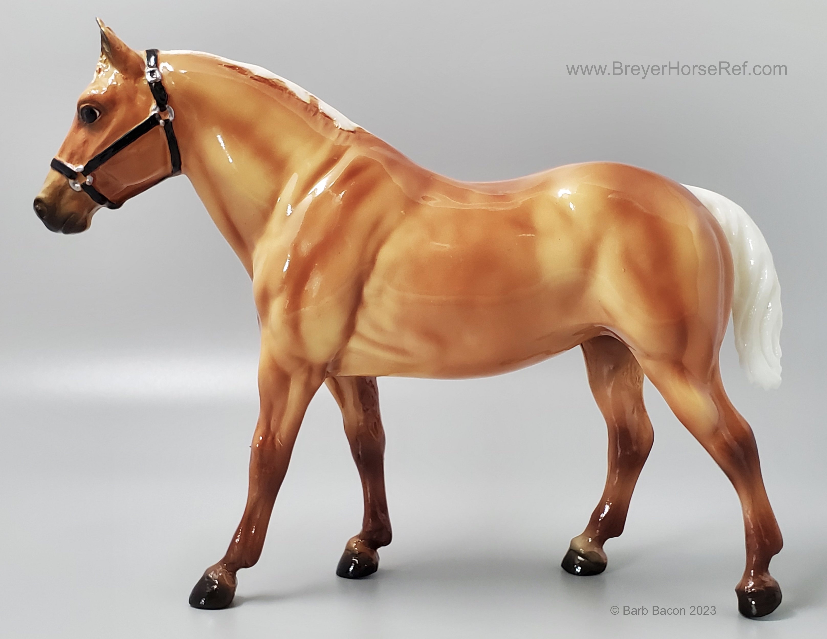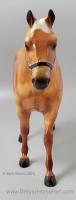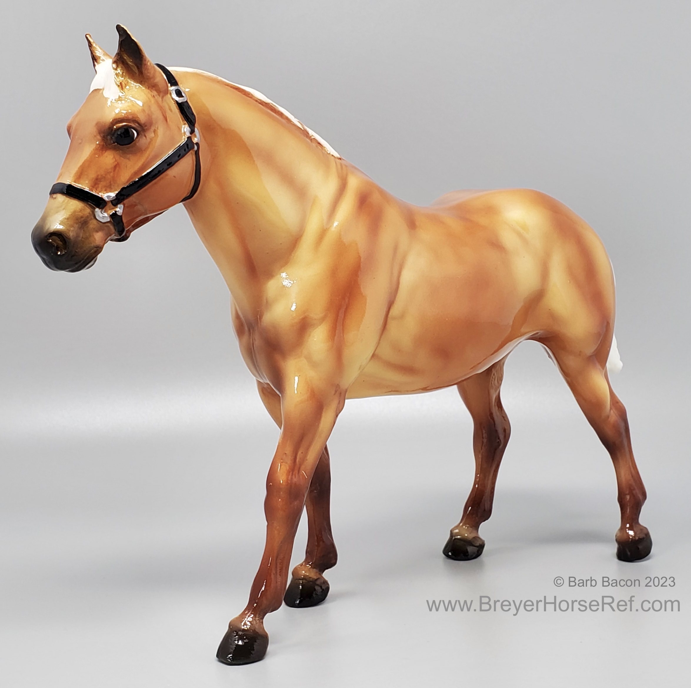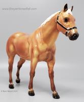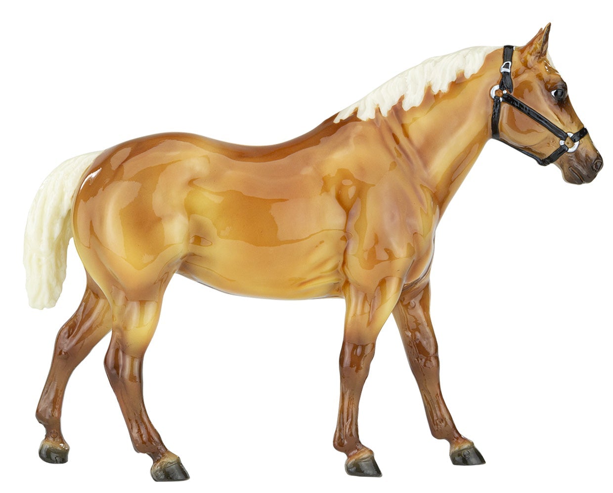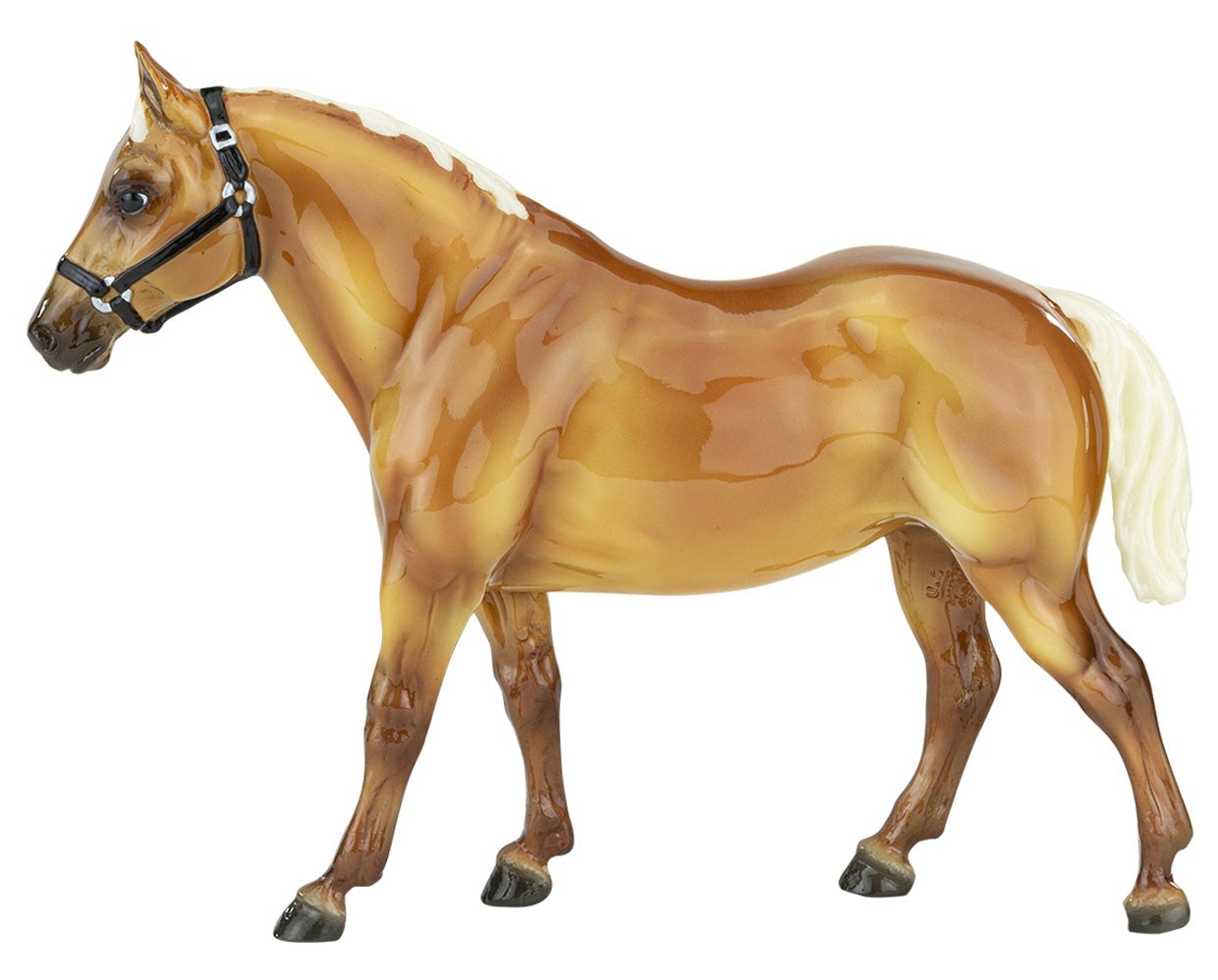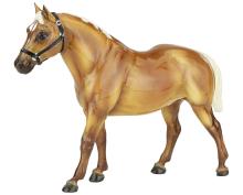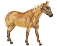 "The origins of the Quarter Horse can be traced to Colonial America. The short horses echoed a pioneer experience, and were quick, tough, and hardy – traits necessary and suited to life on a wilderness frontier. These heavily muscled, compact horses could run a short distance over a straightaway faster than any other horse, and the fastest were called Celebrated American Quarter Running Horses by English colonists in the 1600s. In 1940, a registry was formed to preserve the breed which officially became the American Quarter Horse. The recognized colors of American Quarter Horses, including the most prominent color of sorrel (brownish red), are bay, black, brown, buckskin, chestnut, dun, red dun, gray, grullo, palomino, red roan, blue roan, bay roan, perlino, and cremello. New for 2022. Ships in a mail order box." www.breyerhorses.com.