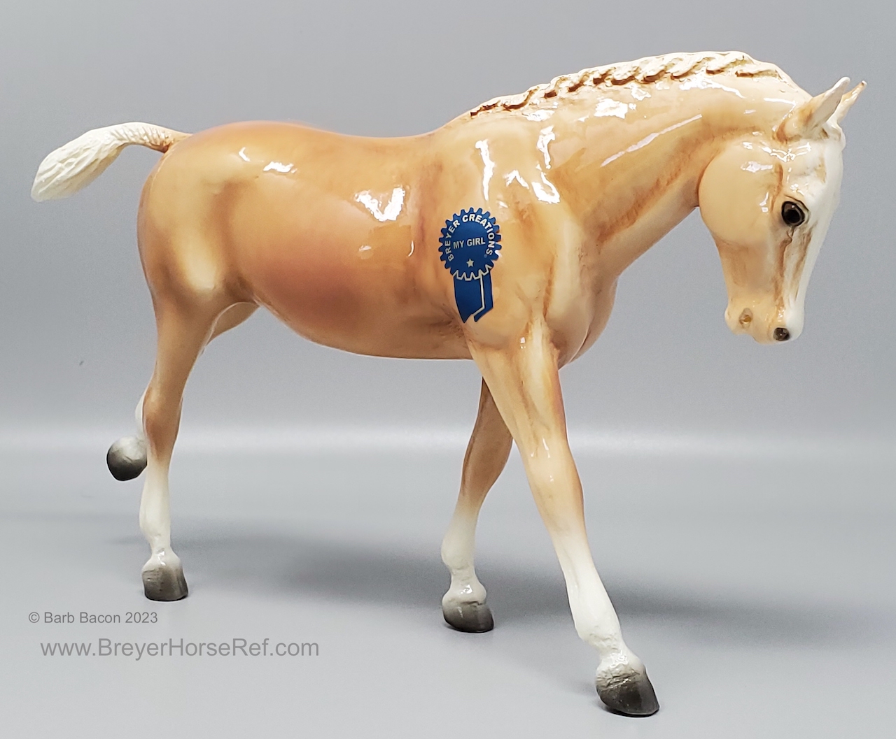 Glossy Palomino chalky paint with Blue Ribbon Sticker.