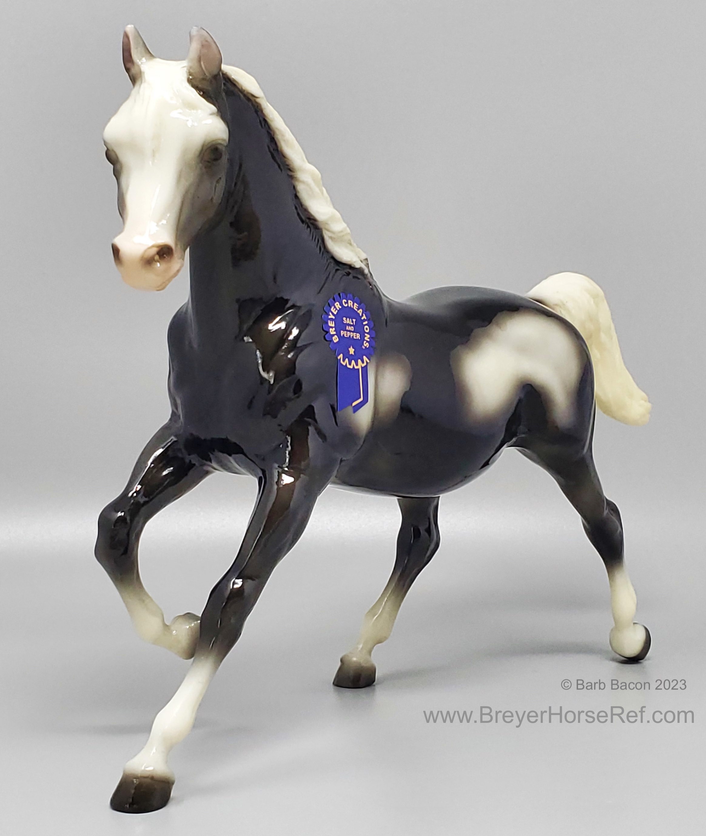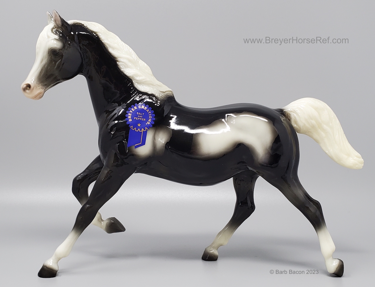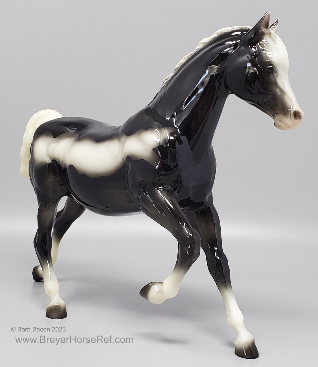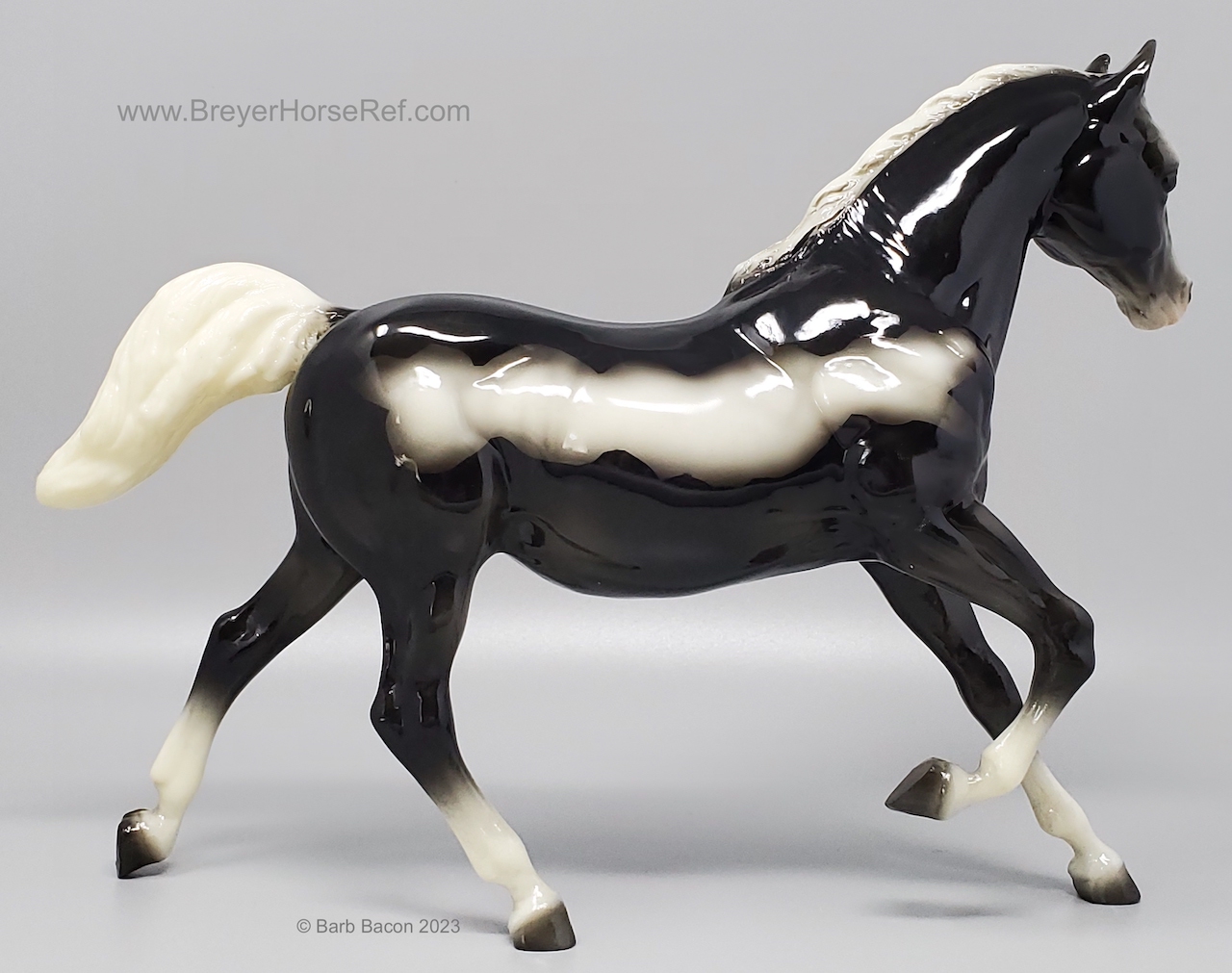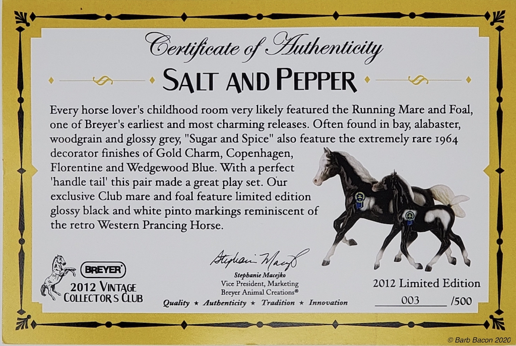 Glossy Black Tobiano with matching Running Foal. The Certificate of Authenticity is for both mare and foal.