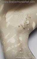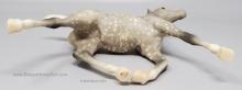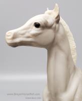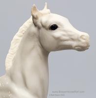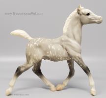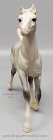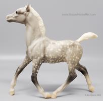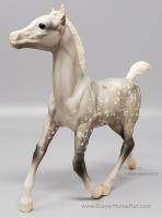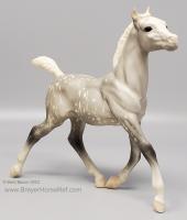 Matte dapple grey with white mane and tail, 4 stockings with pink hooves, and bald face with pink nose and ears. Most models did not have dapples on the neck or head. Released in a set with a matching Running Mare. Some models are known to shrink. Sears Exclusive.