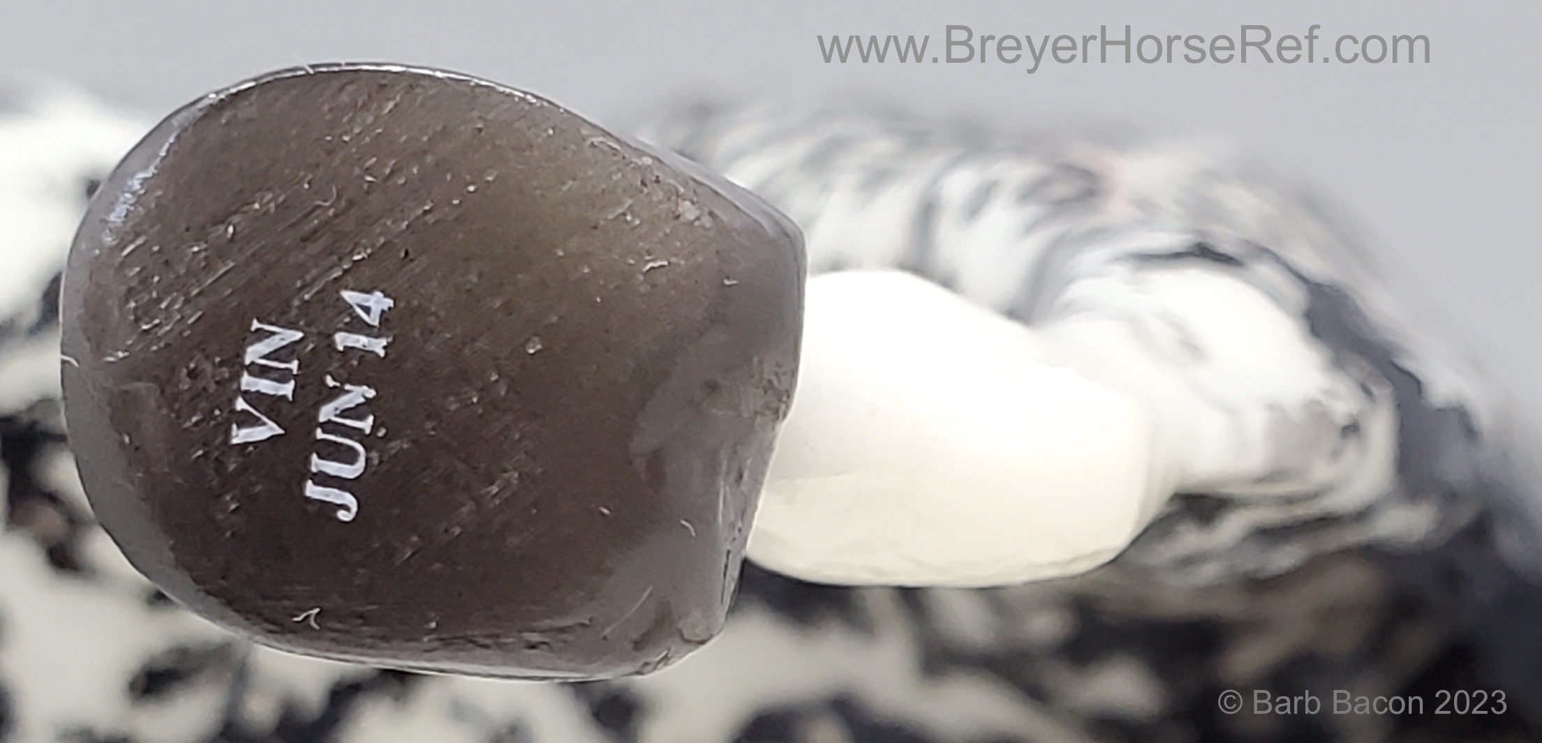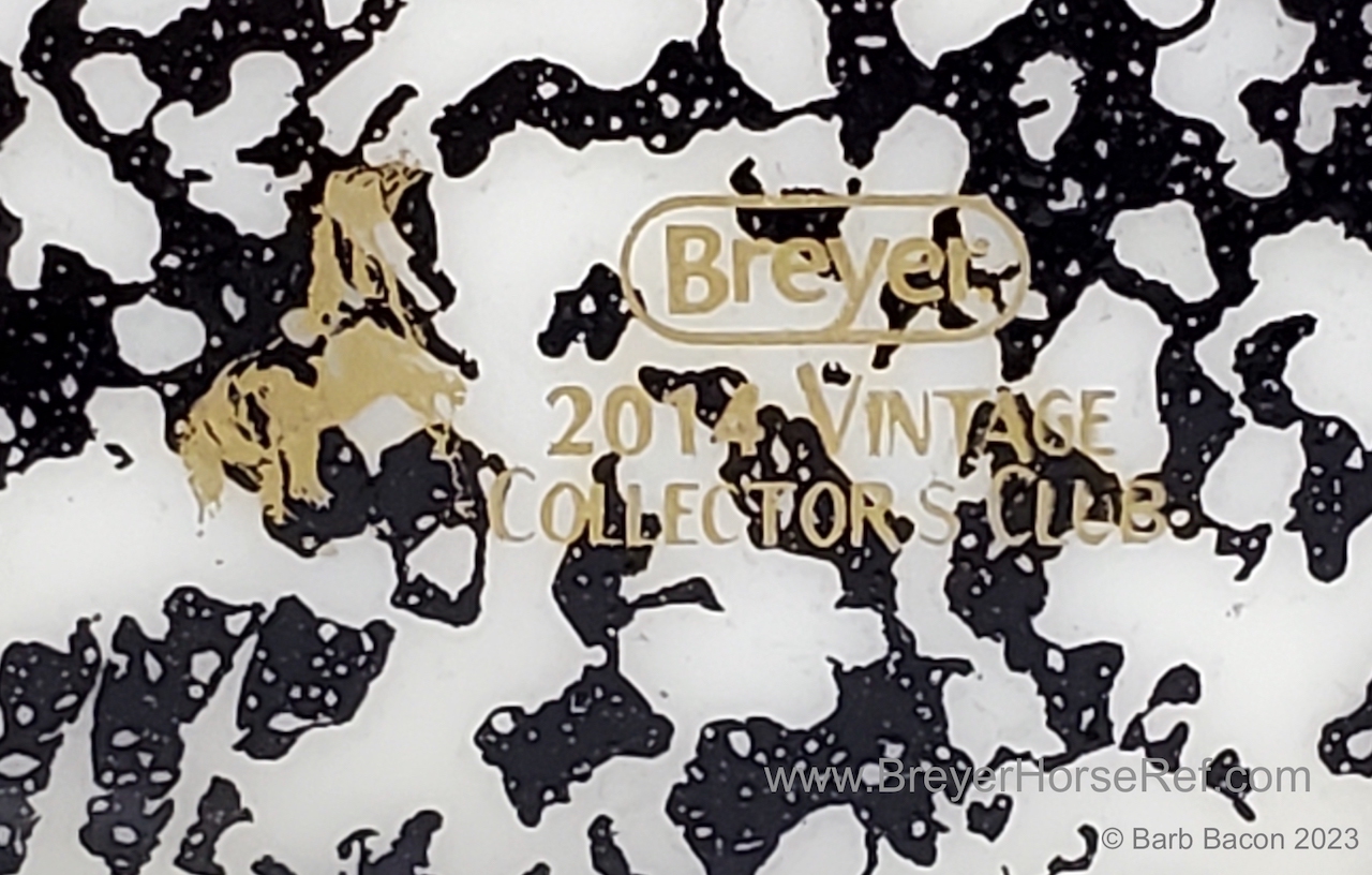 Glossy Dapple Black. 2014 Vintage Collectors Club Stamp on belly. Came with a COA.