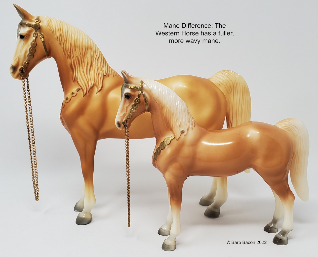 For more information on the Western Pony saddle differences, please see this record: https://www.breyerhorseref.com/node/51188.