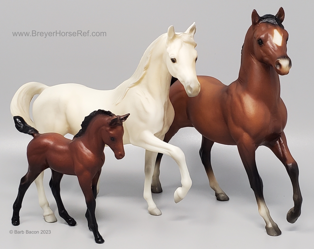 Set included a Bay Classic Arabian Stallion, a Rose Alabaster Classic Arabian Mare and a Bay Classic Arabian Foal. Sears Exclusive.