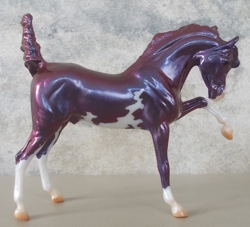 -Metallic Splash Pinto with Purple/Pink Interference" www.breyerhorses.com.