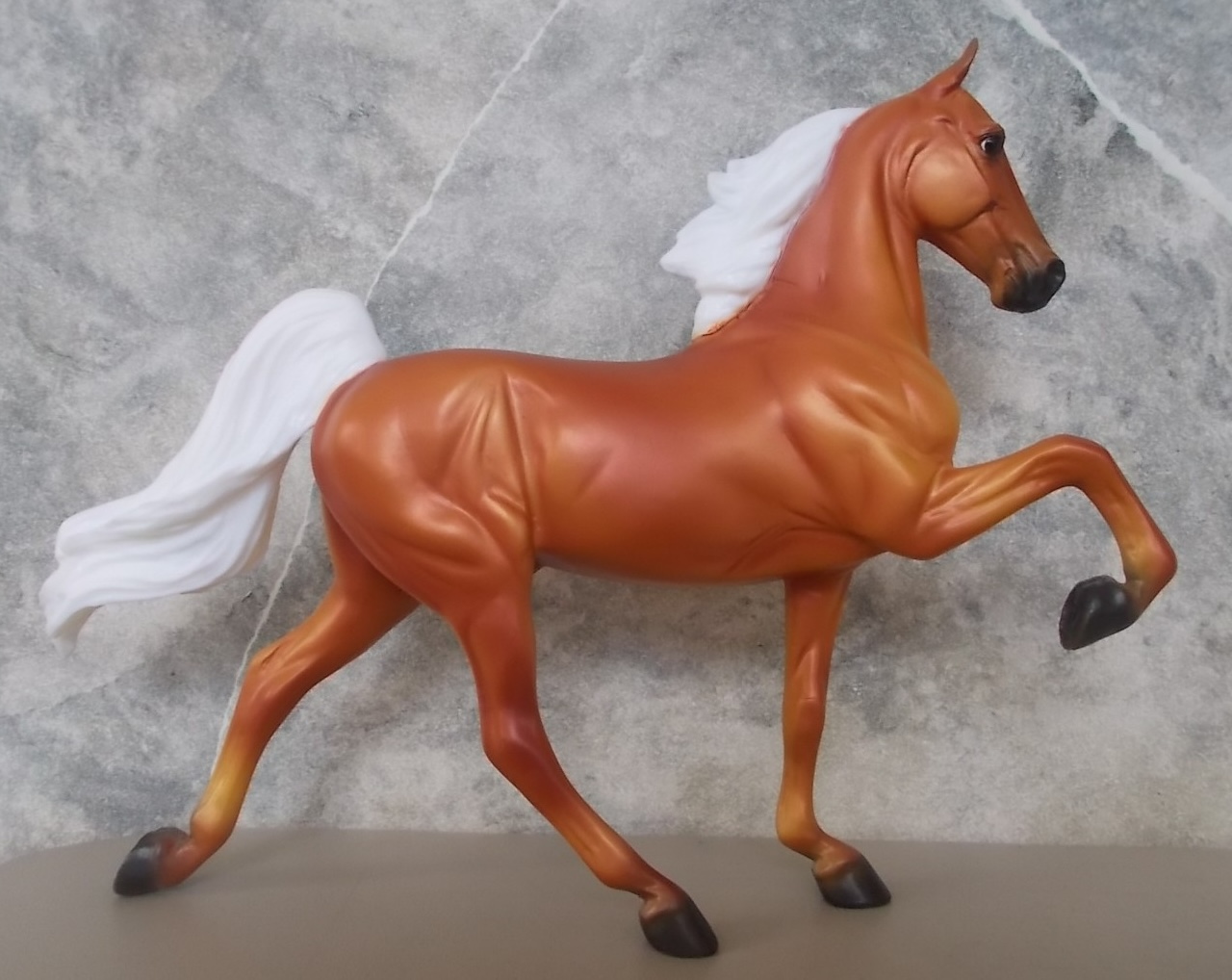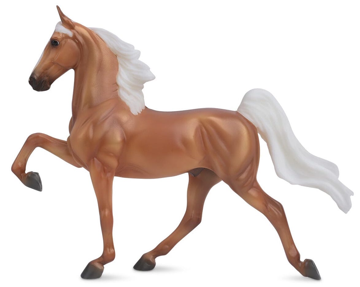 "Elegant riding horses, the Saddlebred is best known for being the ultimate show horse, high-stepping and elegant, as they perform five gaits: walk, trot, canter, slow gait, and rack. Happy, alert and curious, Saddlebreds possess that people-oriented quality called personality, endearing them to their owners and admirers." www.breyerhorses.com. On the 2025 Retired List.