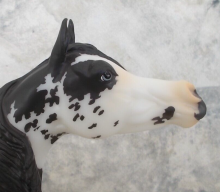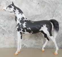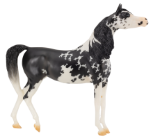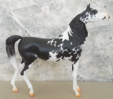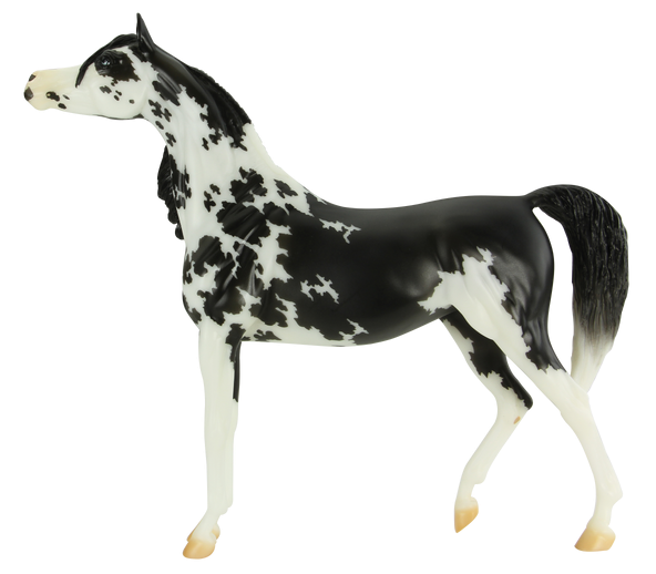 "Araba is the Turkish word for a type of carriage or cart used in Turkey and neighboring Middle Eastern countries. These are usually heavy carts, without springs, that are often covered. They can vary in size and decoration and are used for all types of functions, from carrying goods to transporting people. In honor of this year’s Driving Forward theme, our Araba has been done on the brand new Arabian Mare mold, #813, sculpted by Brigitte Eberl, in a stunning black sabino pinto with beautiful blue eyes." www.breyerhorses.com.