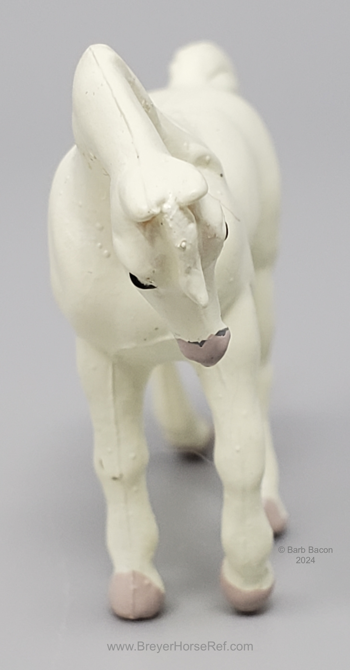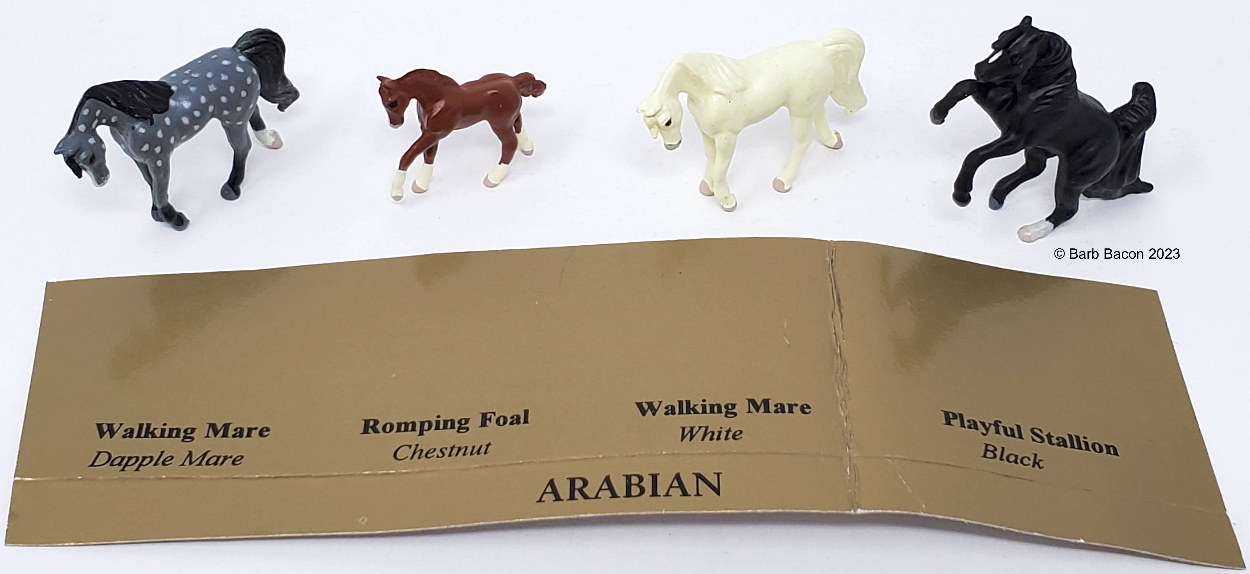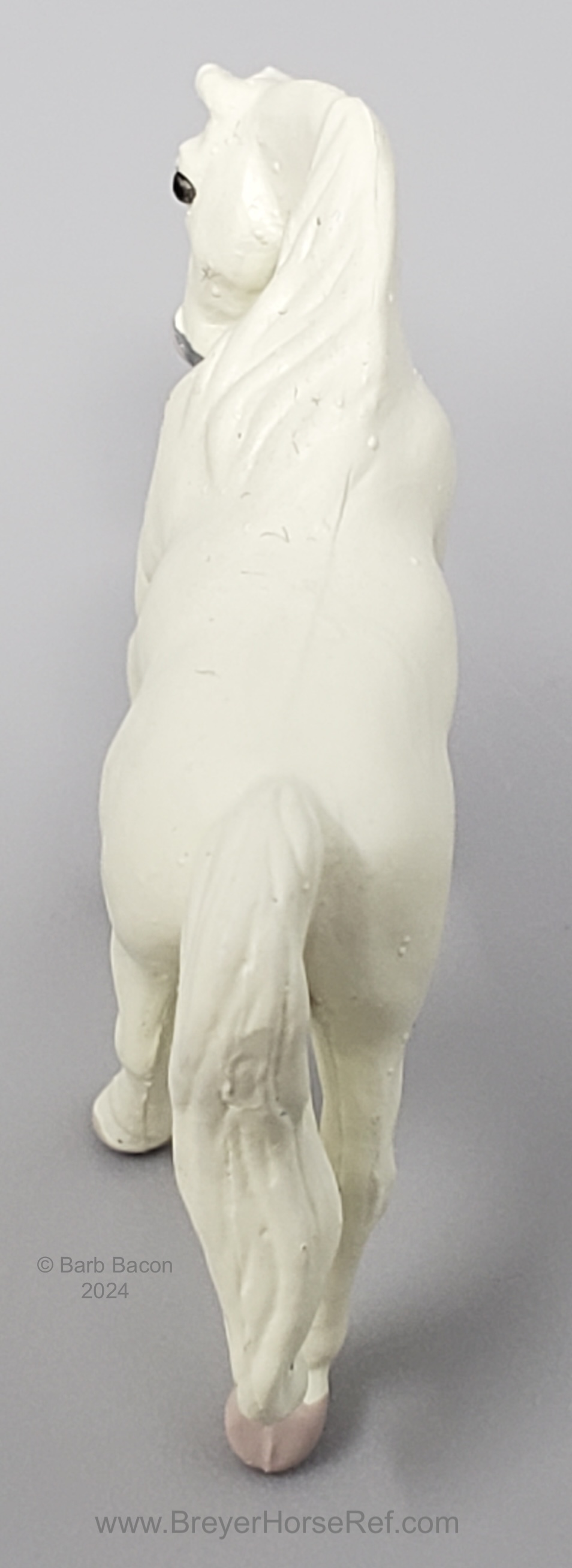 Alabaster with tan painted hooves and nose. This model was released in the Series I Arabian Set #3960, Winners Choice Micro Horses by Creata International. Per Artist Candace Liddy, the packaging was completed in 1996, however the models were not available until 1997. Breyer bought this mold in 2004.