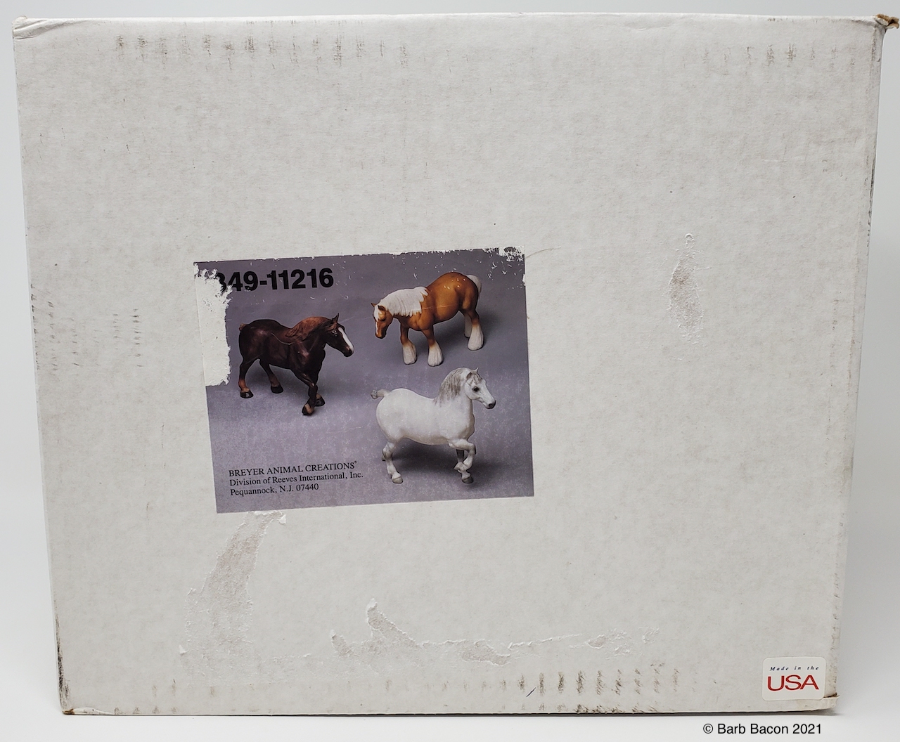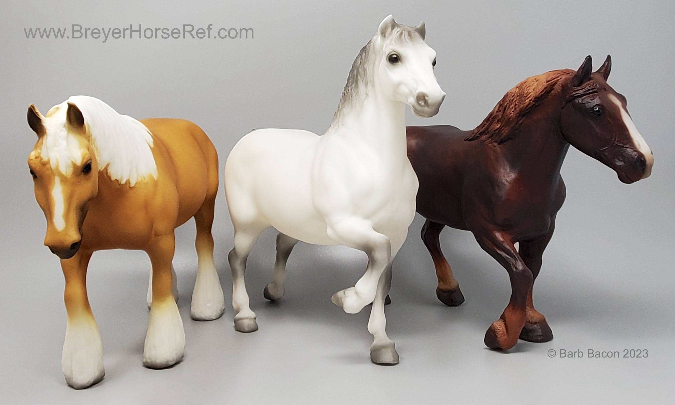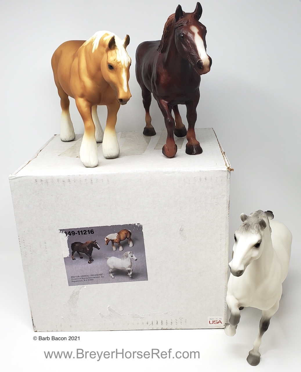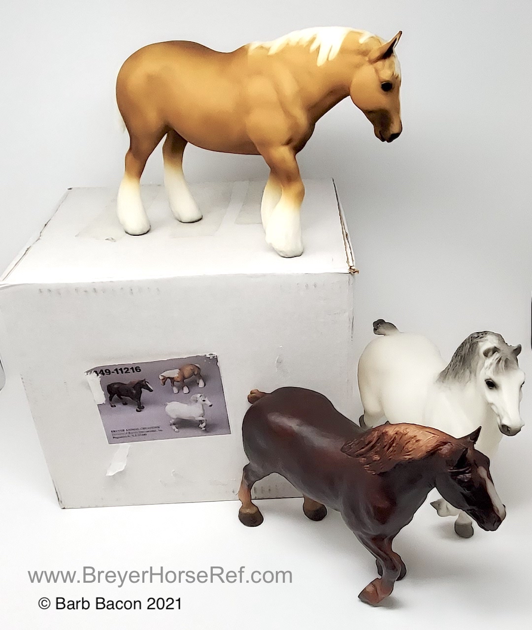 Sears (#11216) Special Run. Set included a Palomino Shire, Alabaster Belgian and a Dark Liver Chestnut Roy. Leftover models were available through Bentley Sales.