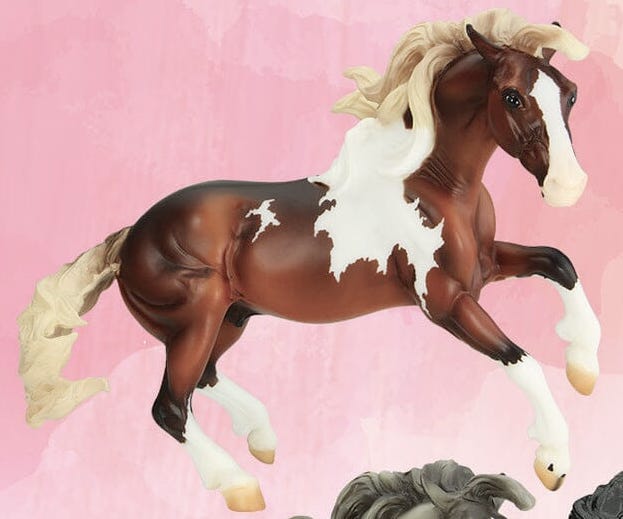 "The Mustang has long been a symbol of freedom and spirit. Found everywhere from western mountain ranges to the Atlantic shoreline, their territories are as varied as their coats. Mustangs can be found with just about every color and pattern, thanks to the many breeds that contributed to their gene pool over the course of history. This year’s Gambler’s Choice model comes in three realistic and eye-catching coats: Grulla Blanket Appaloosa, Chestnut Tobiano Pinto, and Glossy Dappled Bay." www.breyerhorses.com. The Second Collector Club Exclusive of 2023.