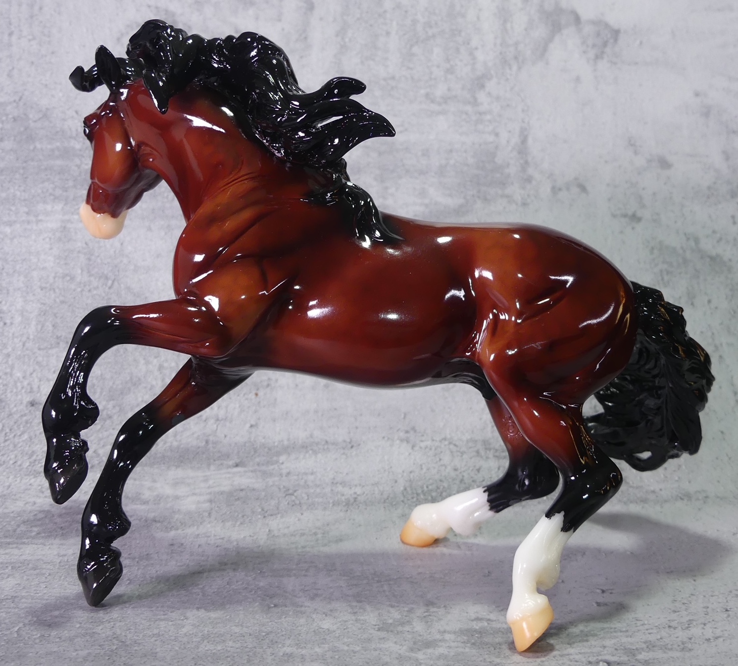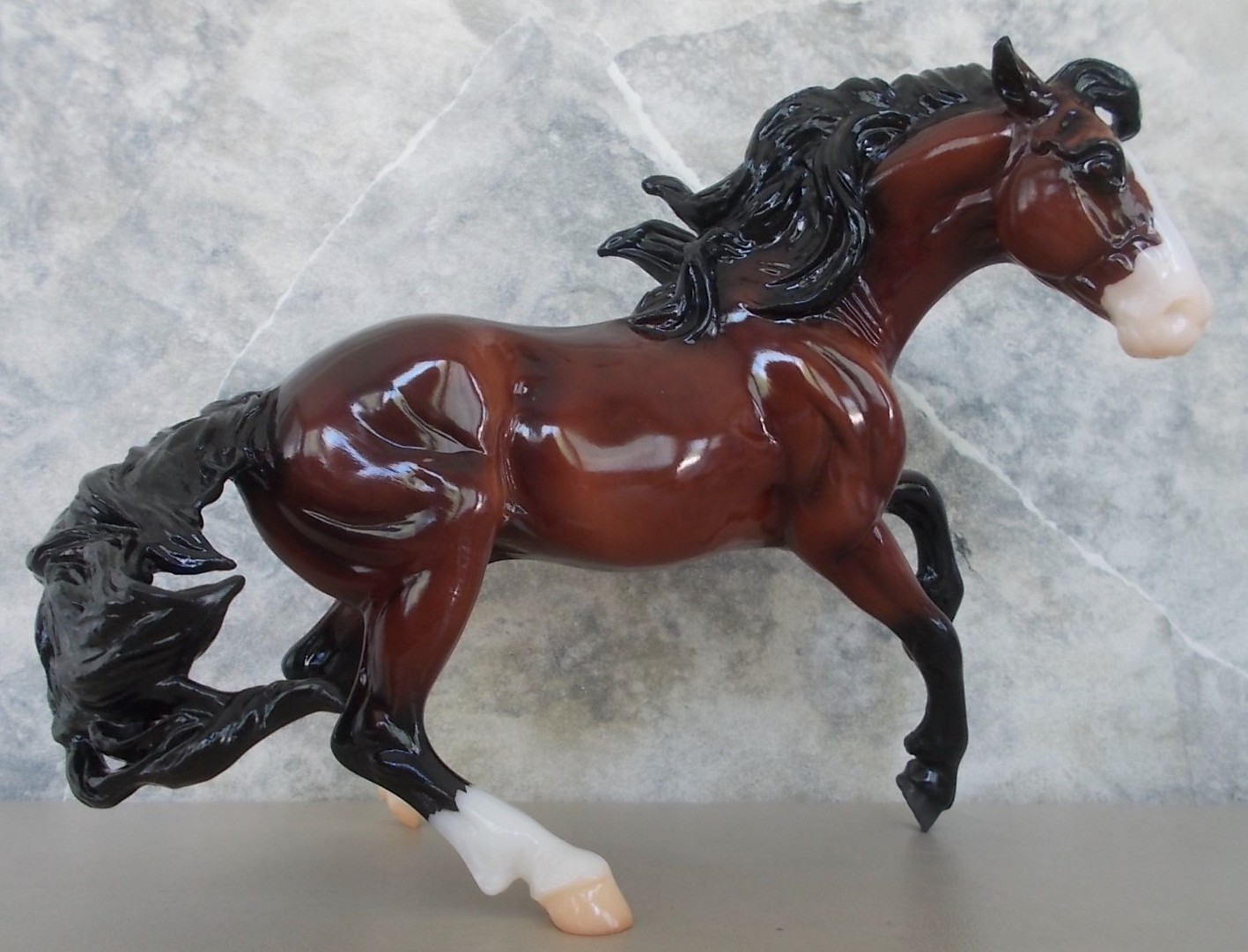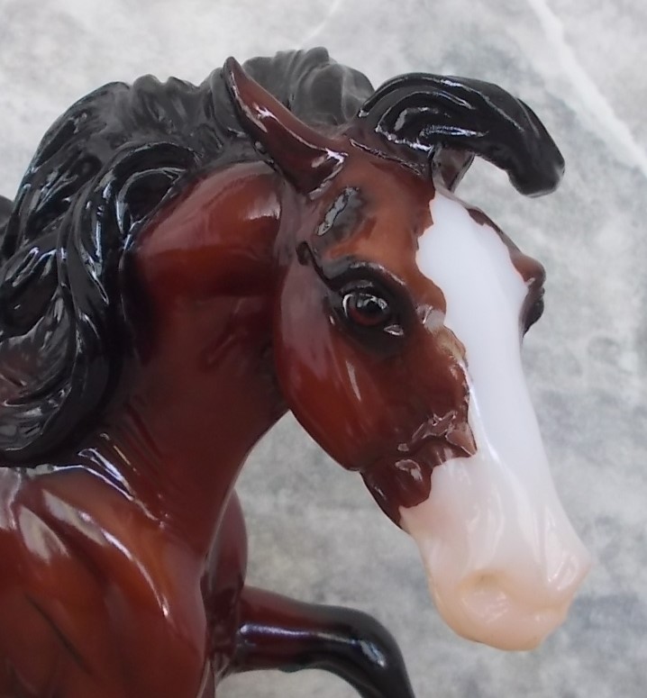 "The Mustang has long been a symbol of freedom and spirit. Found everywhere from western mountain ranges to the Atlantic shoreline, their territories are as varied as their coats. Mustangs can be found with just about every color and pattern, thanks to the many breeds that contributed to their gene pool over the course of history. This year’s Gambler’s Choice model comes in three realistic and eye-catching coats: Grulla Blanket Appaloosa, Chestnut Tobiano Pinto, and Glossy Dappled Bay." www.breyerhorses.com. The Second Collector Club Exclusive of 2023.