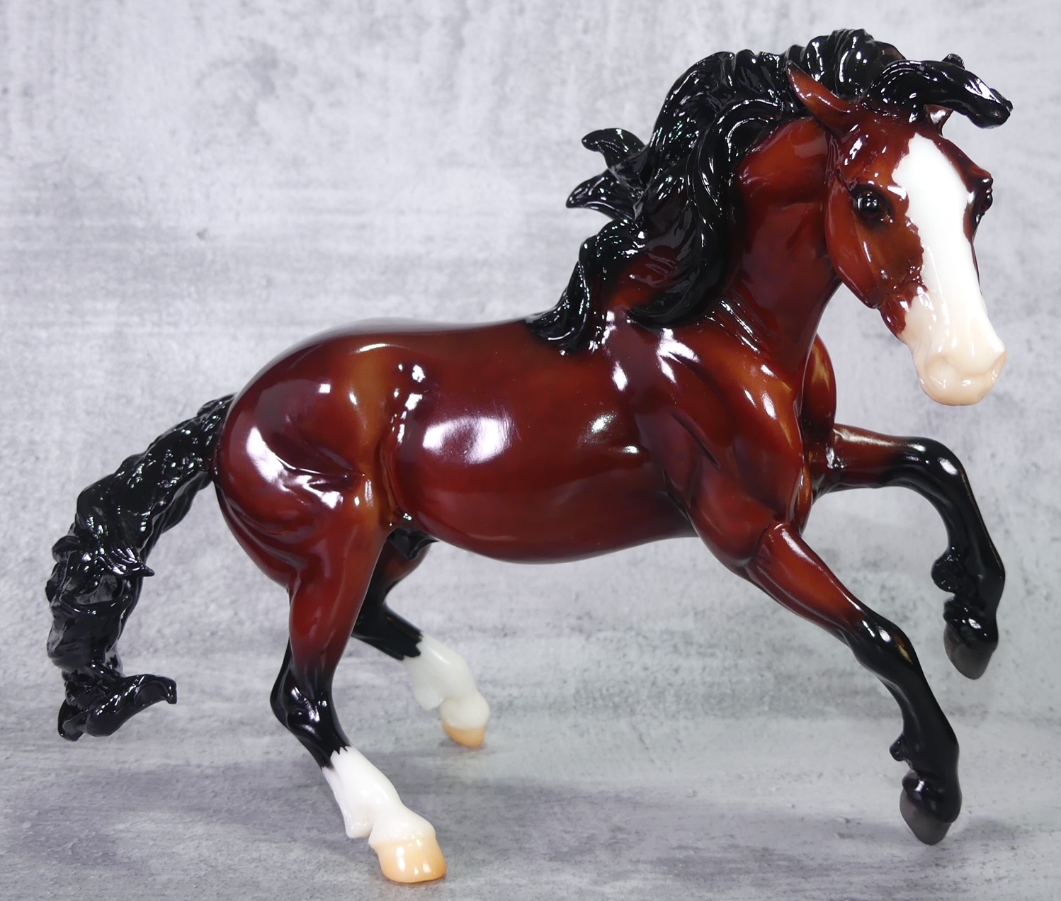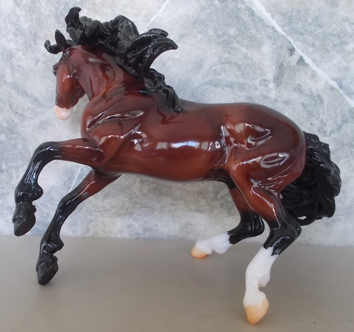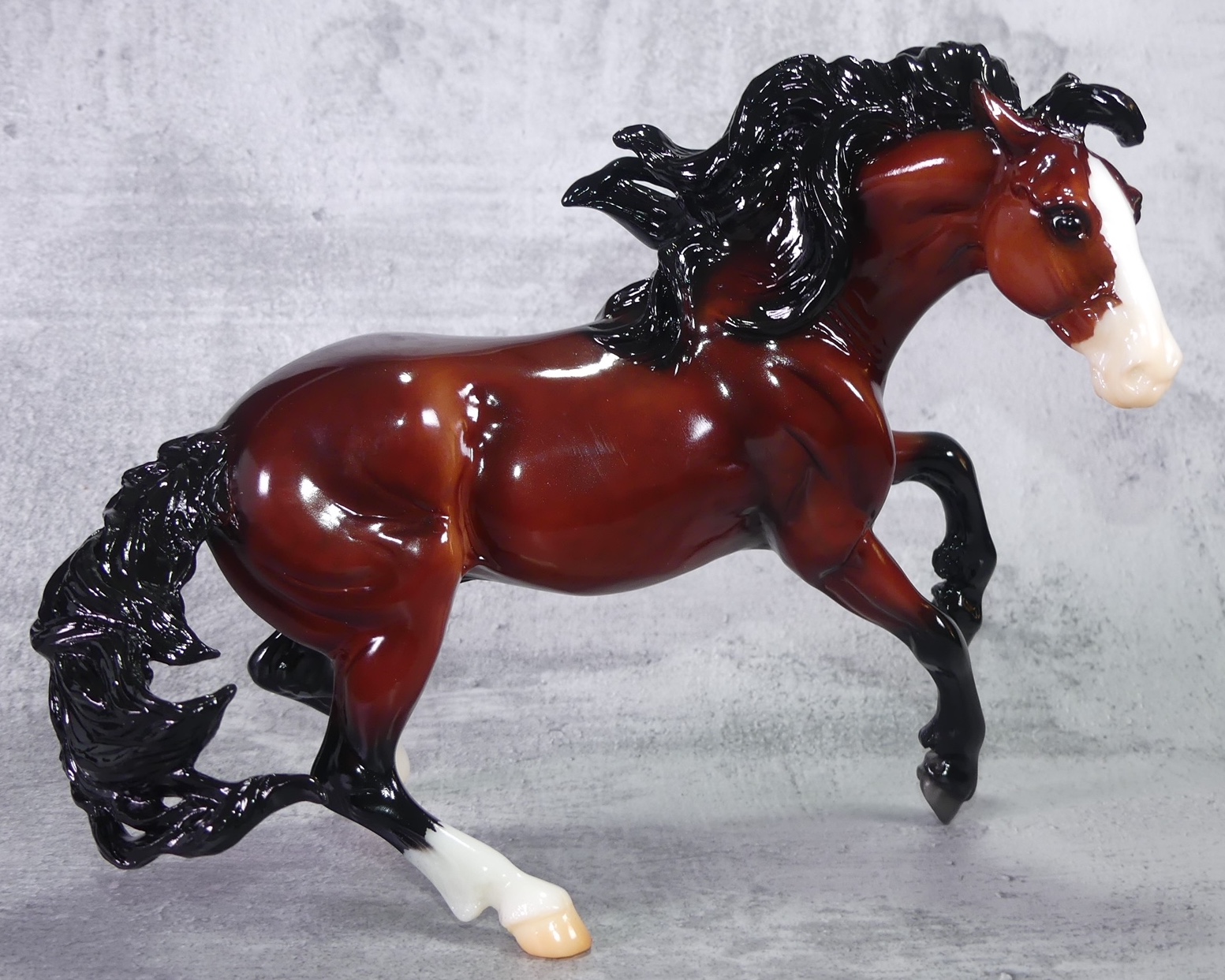"The Mustang has long been a symbol of freedom and spirit. Found everywhere from western mountain ranges to the Atlantic shoreline, their territories are as varied as their coats. Mustangs can be found with just about every color and pattern, thanks to the many breeds that contributed to their gene pool over the course of history. This year’s Gambler’s Choice model comes in three realistic and eye-catching coats: Grulla Blanket Appaloosa, Chestnut Tobiano Pinto, and Glossy Dappled Bay." www.breyerhorses.com. The Second Collector Club Exclusive of 2023.