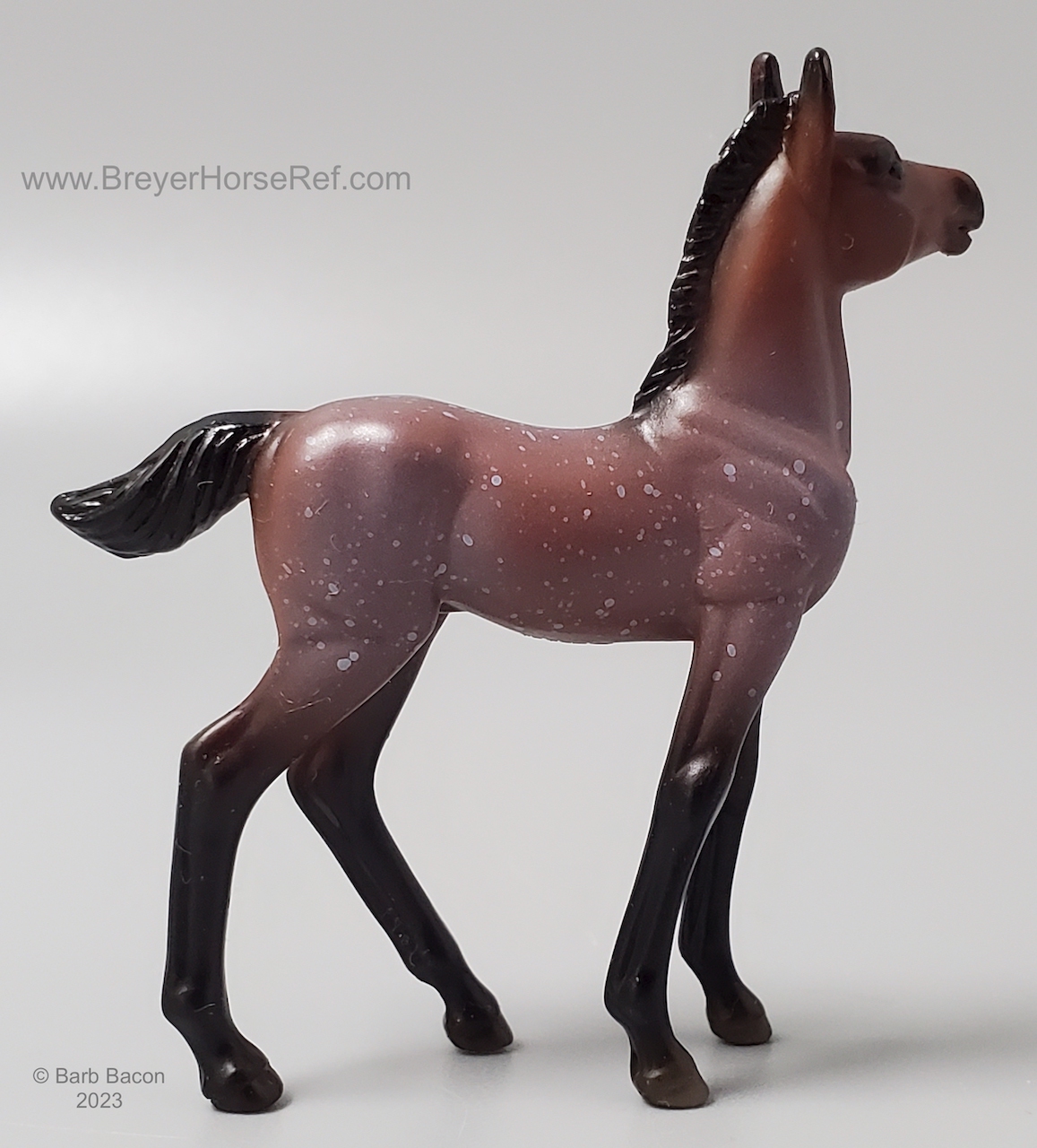 In 2023-2025, this model was part of the Stablemates Horse Foal Surprise #6232 - Sunset Ridge Family. This set included a roan Stock Horse Mare, palomino Prancing Morgan and a roan Standing Foal. Assortment #B-SM-10047 for the Surprise Families. Listed in the 2024 Winter Catalog as item #B-SM-10046. On the 2025 Retired List.