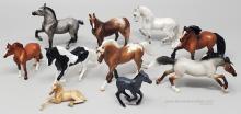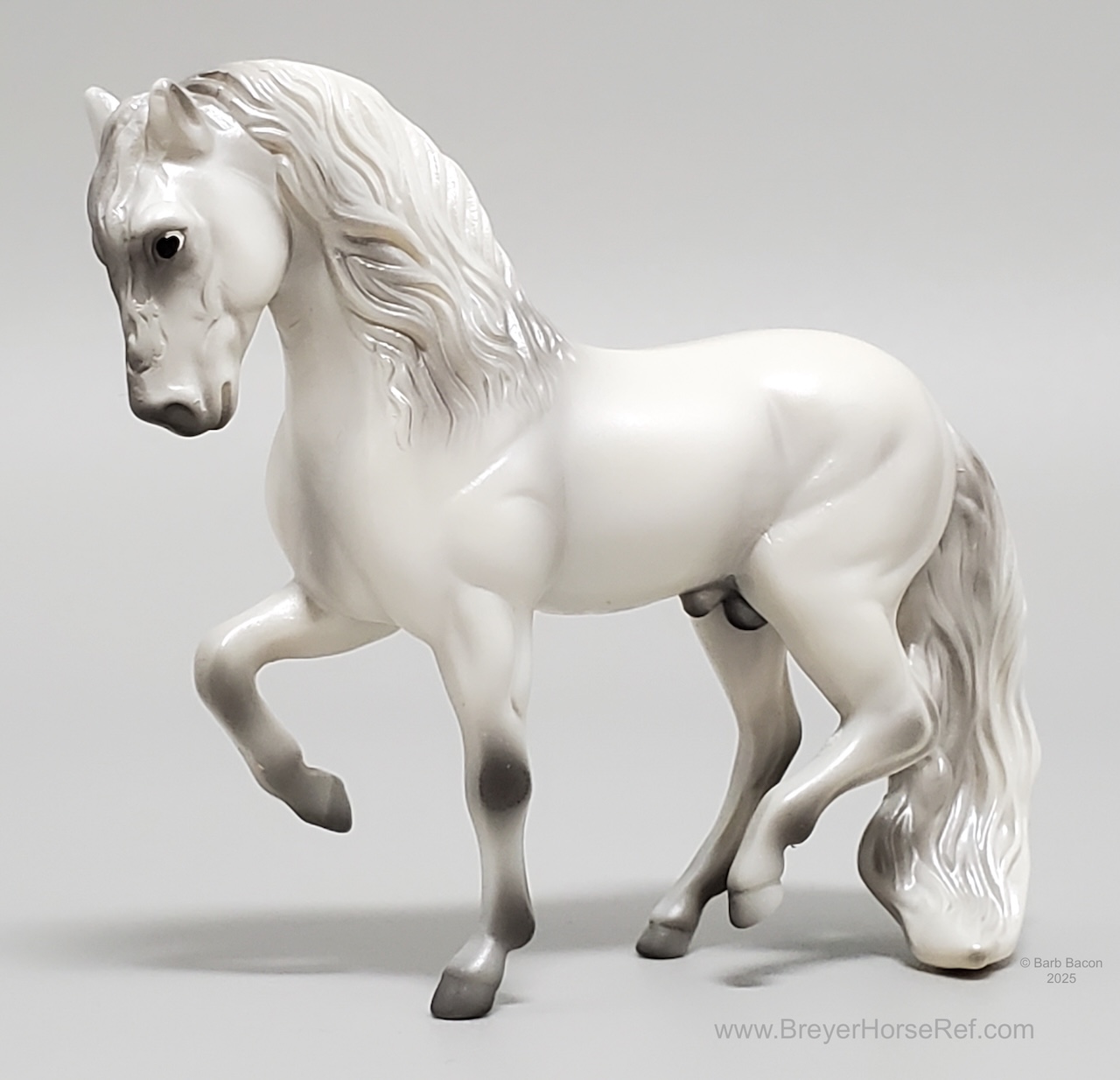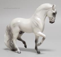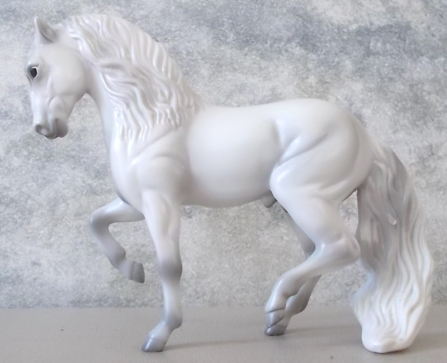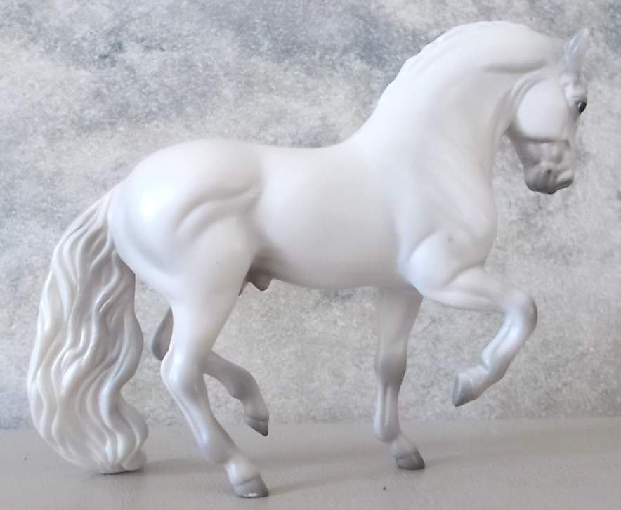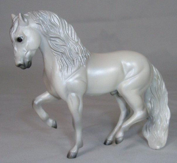 Released in the World of Horses Collection with Shadowbox Set #760218 from 2010-2011 through ToysRUs. This set included a chestnut American Saddlebred, a light grey Andalusian, a bay pinto Appaloosa mold, a chestnut Belgian, a dark bay Clydesdale, a blue roan Highland Pony, a red roan Peruvian Paso, a grey pinto Prancing Morgan, a red roan Shetland Pony, a chestnut appaloosa Standing Stock Horse, a bay Standing Thoroughbred and a palomino Warmblood. Since these were released through ToysRUs, they were not pictured in the 2010-2011 catalogs (they could have also been leftover models).