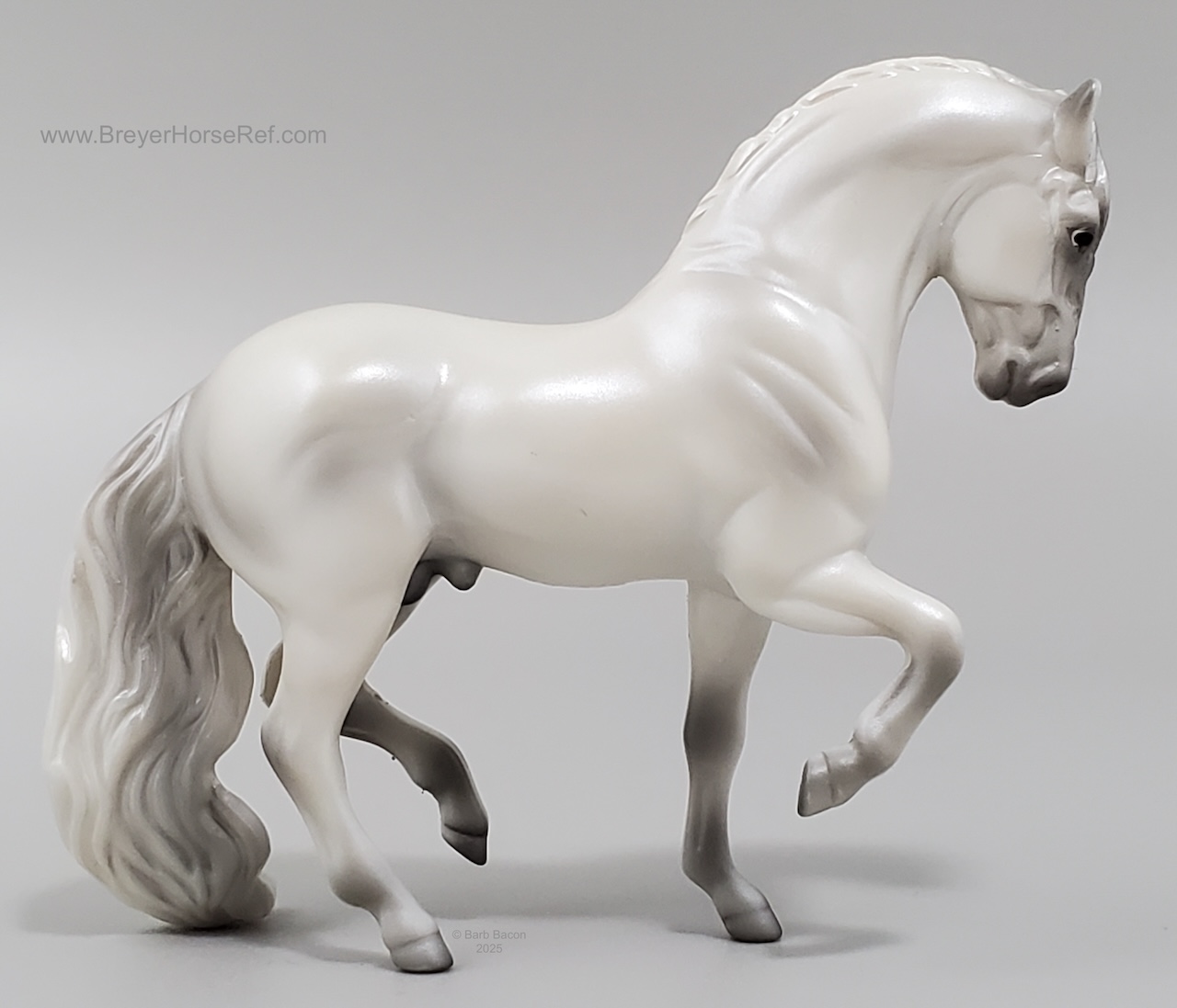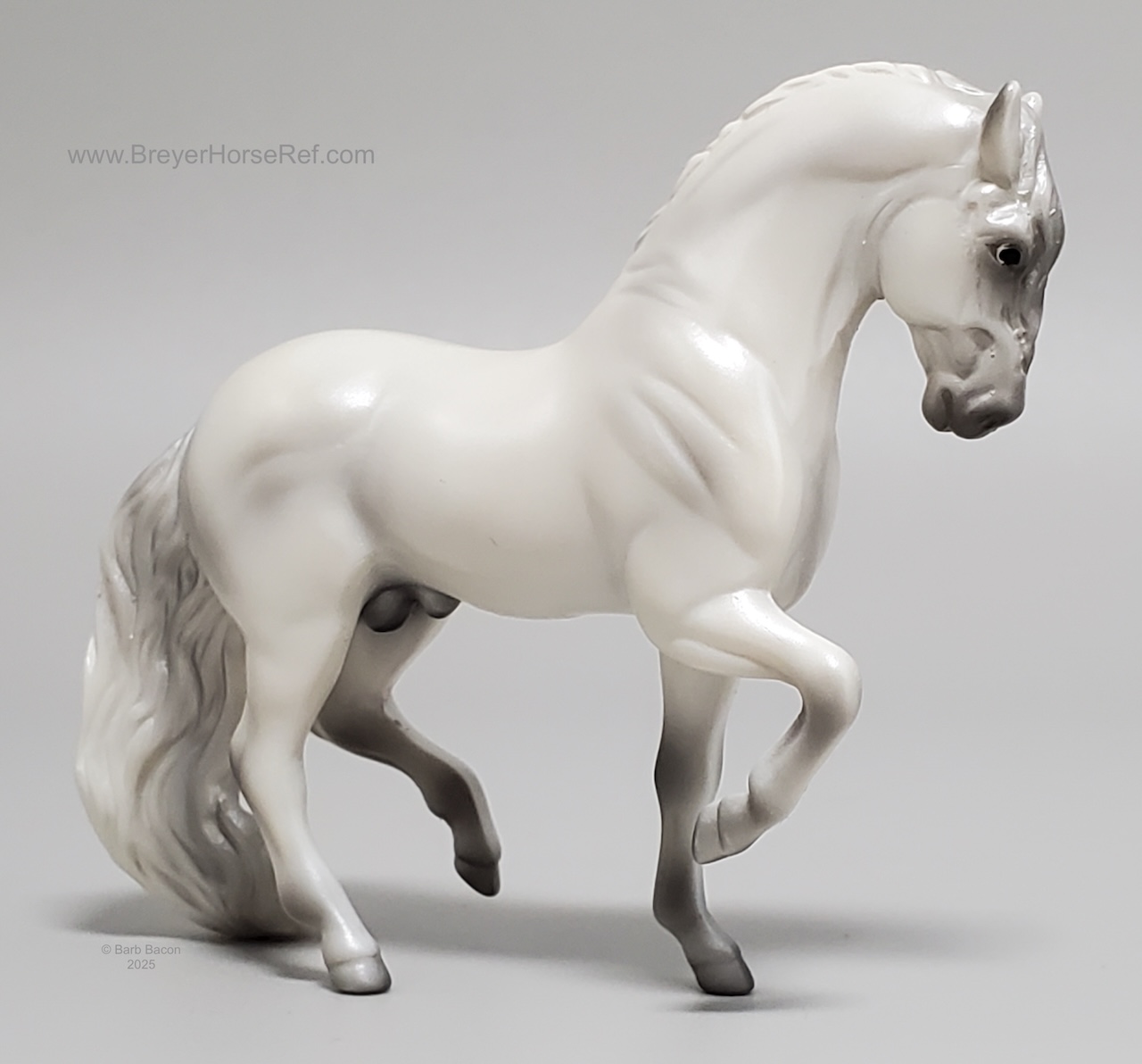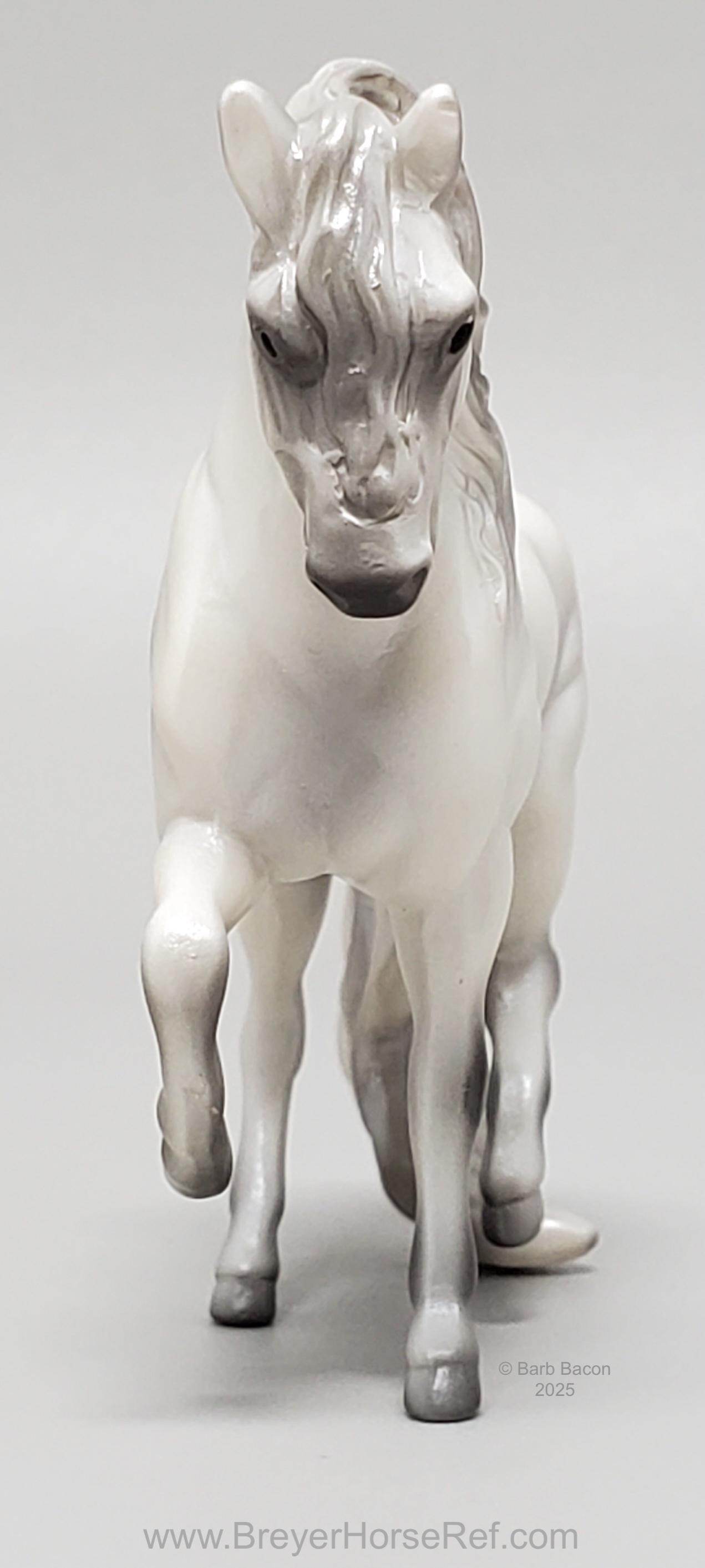 Released in the World of Horses Collection with Shadowbox Set #760218 from 2010-2011 through ToysRUs. This set included a chestnut American Saddlebred, a light grey Andalusian, a bay pinto Appaloosa mold, a chestnut Belgian, a dark bay Clydesdale, a blue roan Highland Pony, a red roan Peruvian Paso, a grey pinto Prancing Morgan, a red roan Shetland Pony, a chestnut appaloosa Standing Stock Horse, a bay Standing Thoroughbred and a palomino Warmblood. Since these were released through ToysRUs, they were not pictured in the 2010-2011 catalogs (they could have also been leftover models).