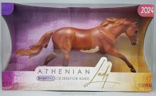 Athenian Lady, done as a mare on the Australian Stock Horse model, mold #746, as a glowing chestnut will be available to select BreyerFest ticket holders, and all attendees will be able to meet this beautiful champion and her owner Amanda at BreyerFest 2024." www.breyerhorses.com. 13000 models released at BreyerFest, but this number will change as models can be backordered and shipped out in December.