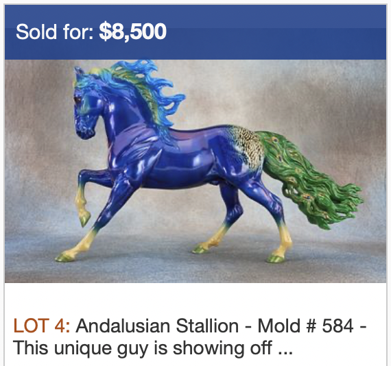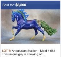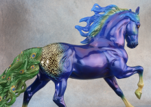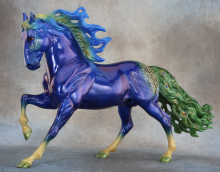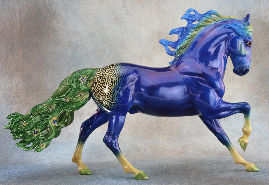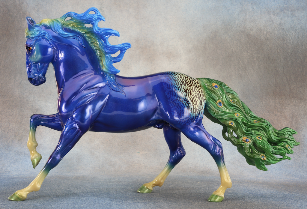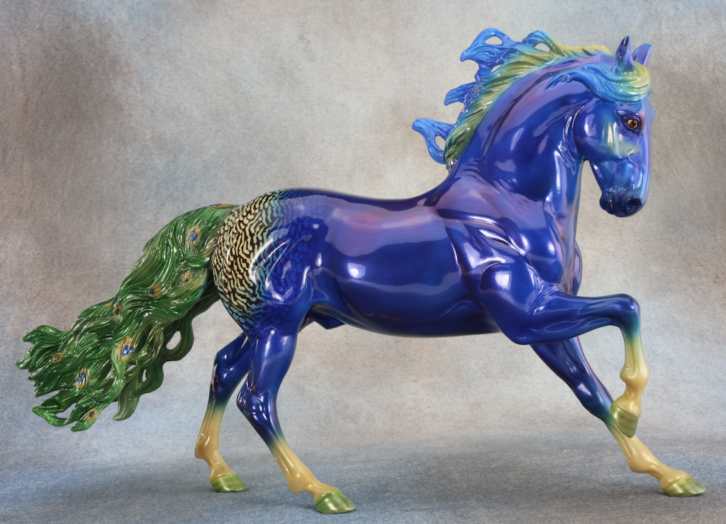 Andalusian Stallion painted in a glossy peacock inspired decorator. BreyerFest 2024 Auction model.